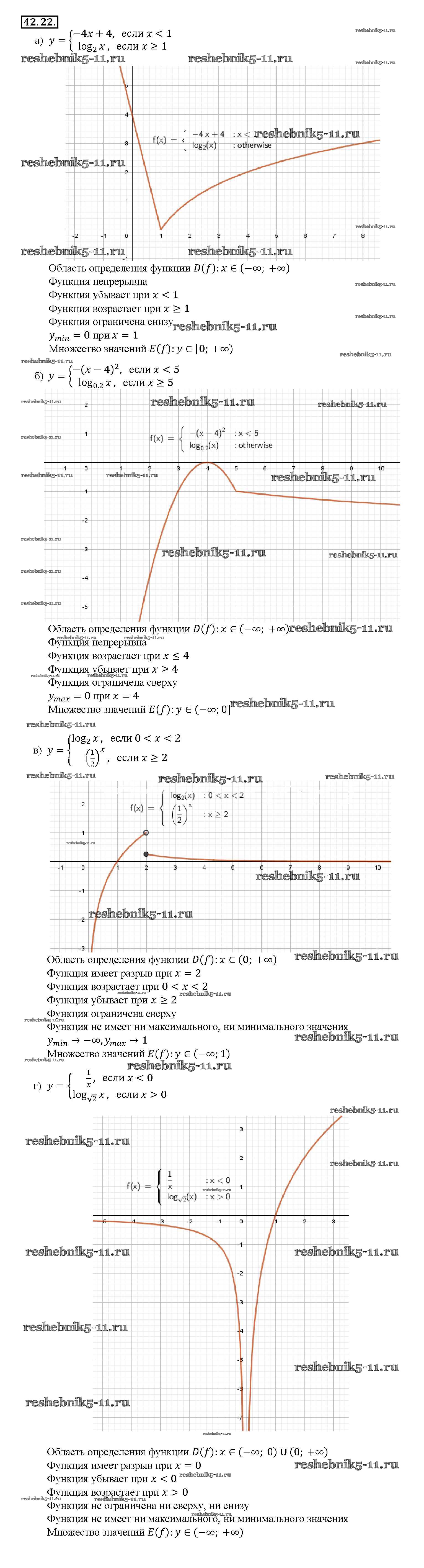 Готовая домашняя работа с ответами по Алгебре за 10, 11 класс Мордкович, Денищева, Корешкова, Мишустина, Семёнов, Тульчинская Задачник Базовый уровень Часть 2 Мнемозина 2015 ФГОС - §42. Функция y = loga x, ее свойства и график 42. 22