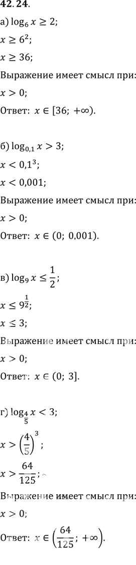 Готовая домашняя работа с ответами по Алгебре за 10, 11 класс Мордкович, Денищева, Корешкова, Мишустина, Семёнов, Тульчинская Задачник Базовый уровень Часть 2 Мнемозина 2015 ФГОС - §42. Функция y = loga x, ее свойства и график 42. 24