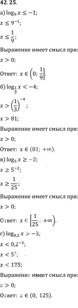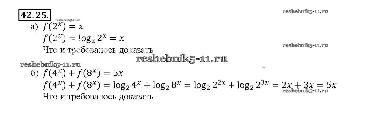 Готовая домашняя работа с ответами по Алгебре за 10, 11 класс Мордкович, Денищева, Корешкова, Мишустина, Семёнов, Тульчинская Задачник Базовый уровень Часть 2 Мнемозина 2015 ФГОС - §42. Функция y = loga x, ее свойства и график 42. 25