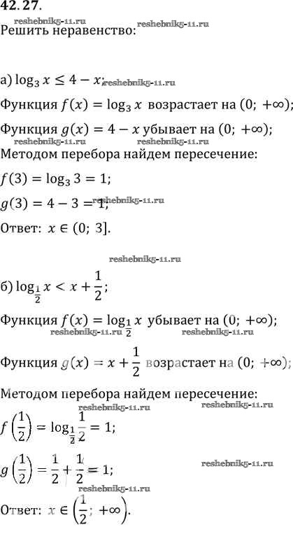 Готовая домашняя работа с ответами по Алгебре за 10, 11 класс Мордкович, Денищева, Корешкова, Мишустина, Семёнов, Тульчинская Задачник Базовый уровень Часть 2 Мнемозина 2015 ФГОС - §42. Функция y = loga x, ее свойства и график 42. 27