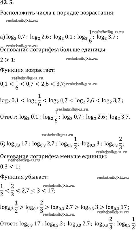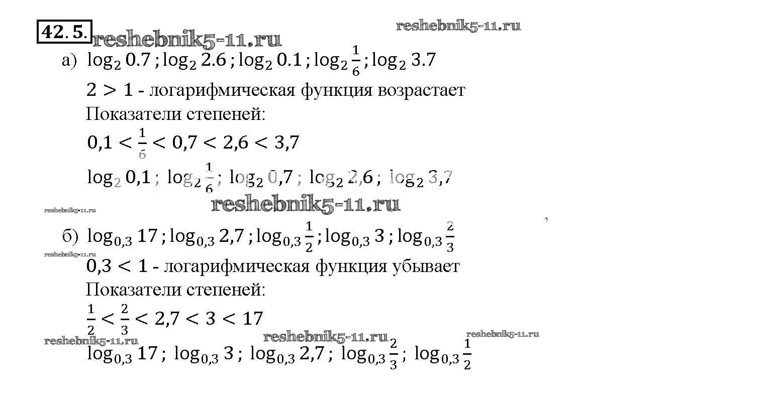 Готовая домашняя работа с ответами по Алгебре за 10, 11 класс Мордкович, Денищева, Корешкова, Мишустина, Семёнов, Тульчинская Задачник Базовый уровень Часть 2 Мнемозина 2015 ФГОС - §42. Функция y = loga x, ее свойства и график 42. 5