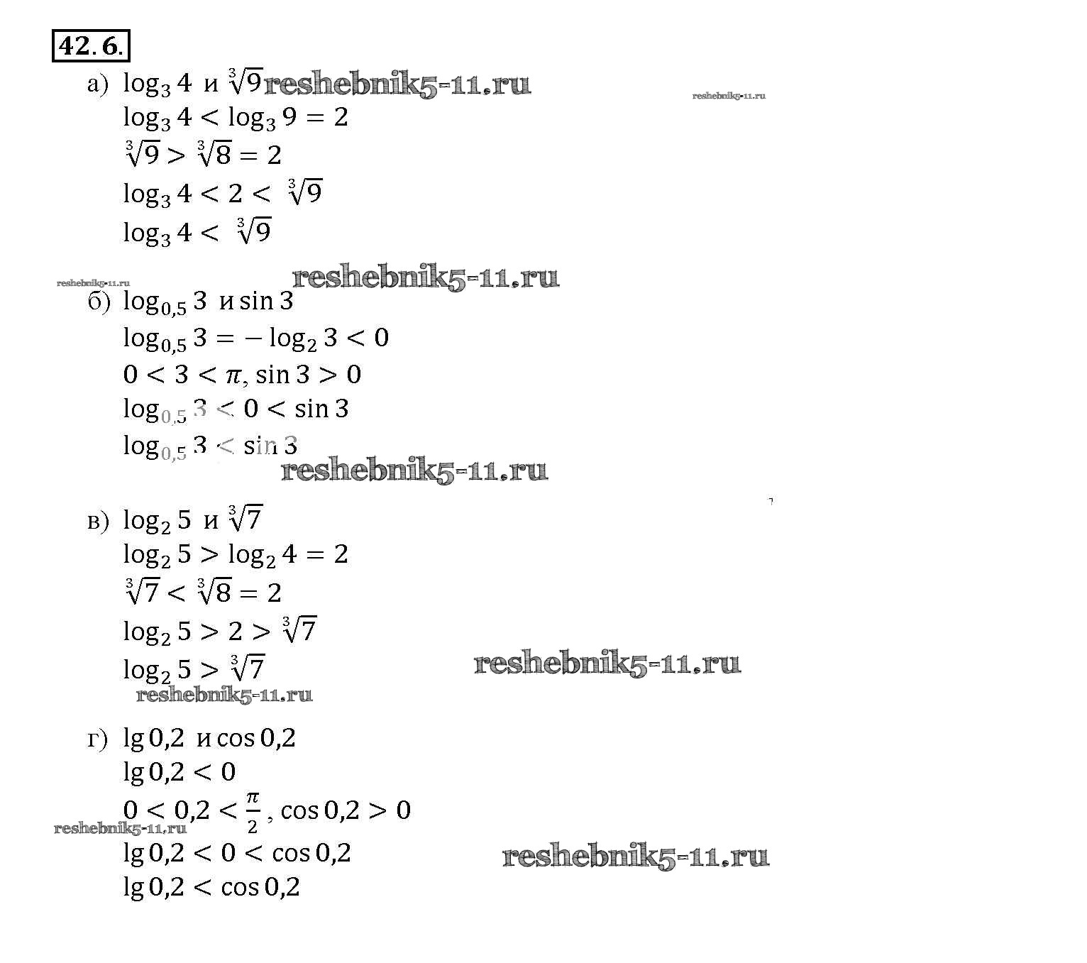 Готовая домашняя работа с ответами по Алгебре за 10, 11 класс Мордкович, Денищева, Корешкова, Мишустина, Семёнов, Тульчинская Задачник Базовый уровень Часть 2 Мнемозина 2015 ФГОС - §42. Функция y = loga x, ее свойства и график 42. 6