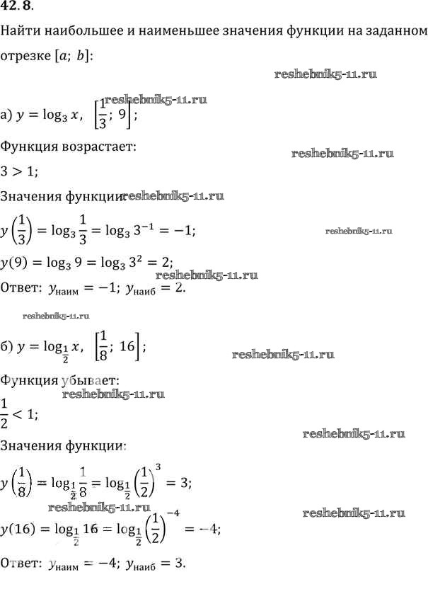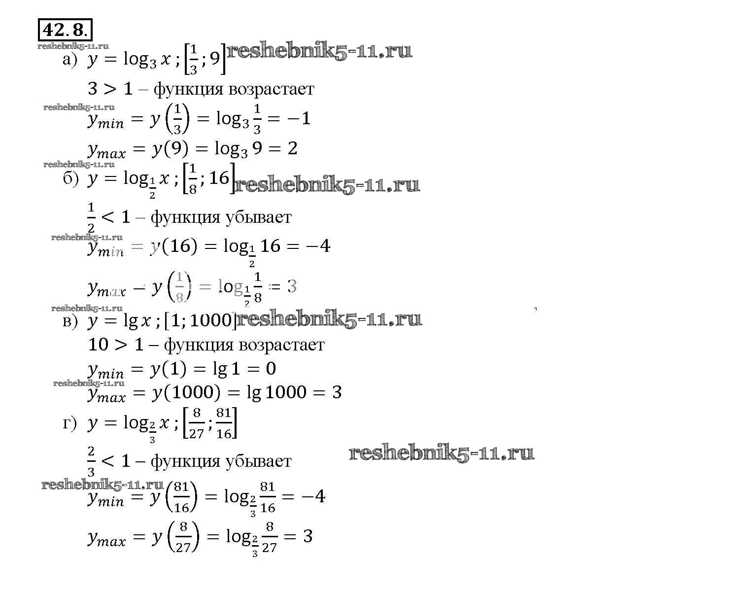 Готовая домашняя работа с ответами по Алгебре за 10, 11 класс Мордкович, Денищева, Корешкова, Мишустина, Семёнов, Тульчинская Задачник Базовый уровень Часть 2 Мнемозина 2015 ФГОС - §42. Функция y = loga x, ее свойства и график 42. 8
