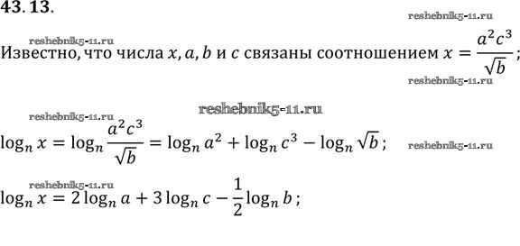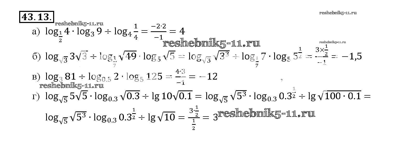 Готовая домашняя работа с ответами по Алгебре за 10, 11 класс Мордкович, Денищева, Корешкова, Мишустина, Семёнов, Тульчинская Задачник Базовый уровень Часть 2 Мнемозина 2015 ФГОС - §43. Свойства логарифмов 43. 13