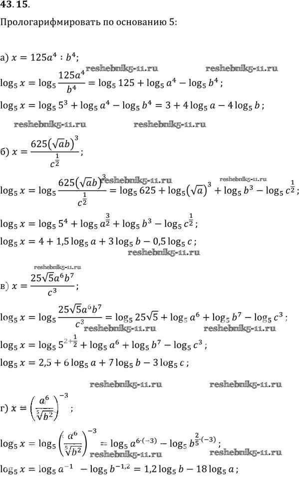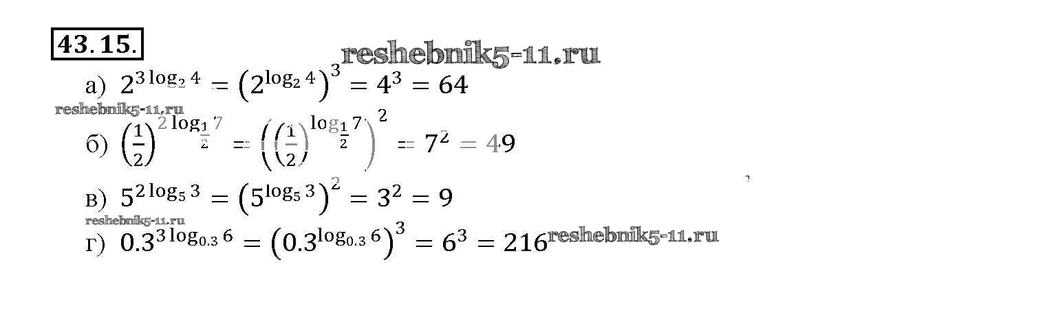 Готовая домашняя работа с ответами по Алгебре за 10, 11 класс Мордкович, Денищева, Корешкова, Мишустина, Семёнов, Тульчинская Задачник Базовый уровень Часть 2 Мнемозина 2015 ФГОС - §43. Свойства логарифмов 43. 15
