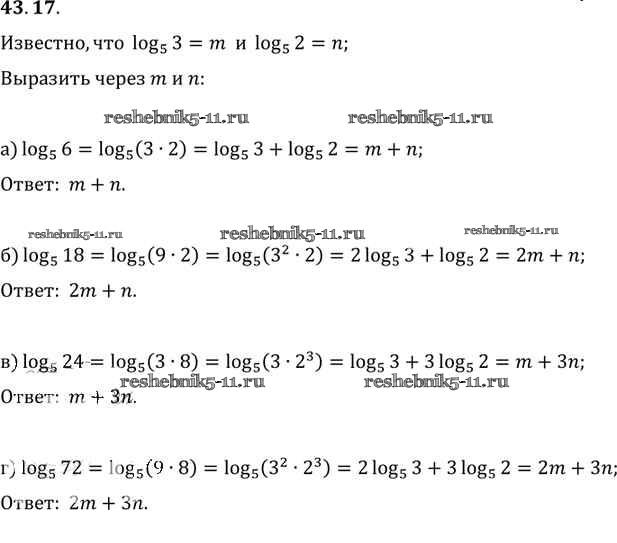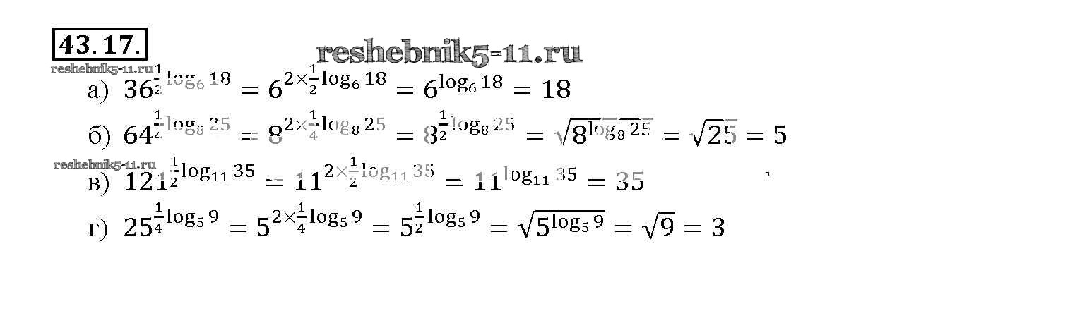 Готовая домашняя работа с ответами по Алгебре за 10, 11 класс Мордкович, Денищева, Корешкова, Мишустина, Семёнов, Тульчинская Задачник Базовый уровень Часть 2 Мнемозина 2015 ФГОС - §43. Свойства логарифмов 43. 17