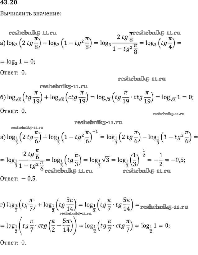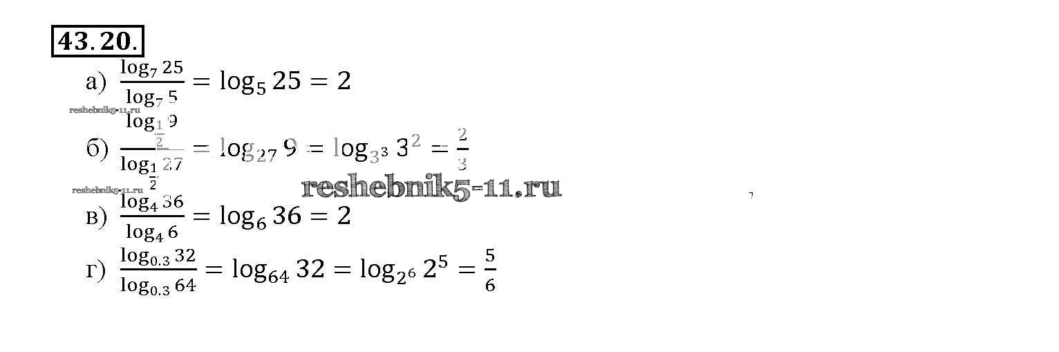 Готовая домашняя работа с ответами по Алгебре за 10, 11 класс Мордкович, Денищева, Корешкова, Мишустина, Семёнов, Тульчинская Задачник Базовый уровень Часть 2 Мнемозина 2015 ФГОС - §43. Свойства логарифмов 43. 20