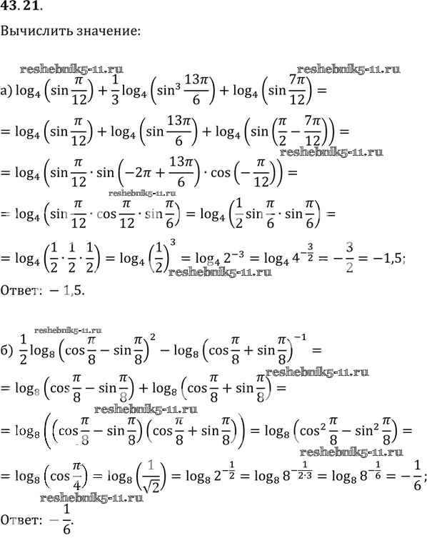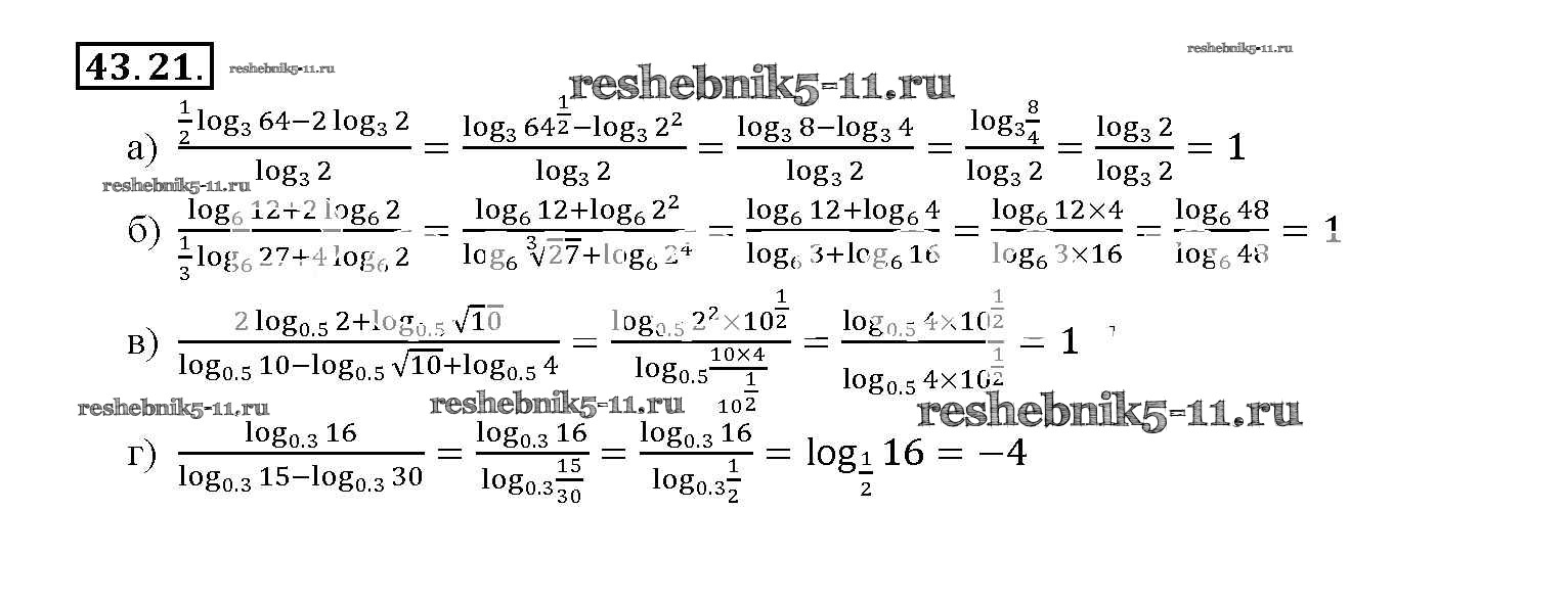 Готовая домашняя работа с ответами по Алгебре за 10, 11 класс Мордкович, Денищева, Корешкова, Мишустина, Семёнов, Тульчинская Задачник Базовый уровень Часть 2 Мнемозина 2015 ФГОС - §43. Свойства логарифмов 43. 21