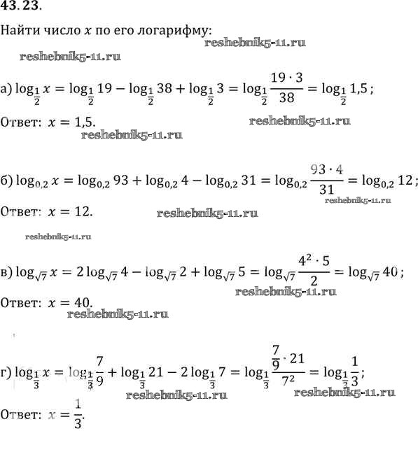 Готовая домашняя работа с ответами по Алгебре за 10, 11 класс Мордкович, Денищева, Корешкова, Мишустина, Семёнов, Тульчинская Задачник Базовый уровень Часть 2 Мнемозина 2015 ФГОС - §43. Свойства логарифмов 43. 23