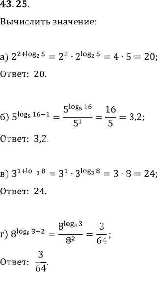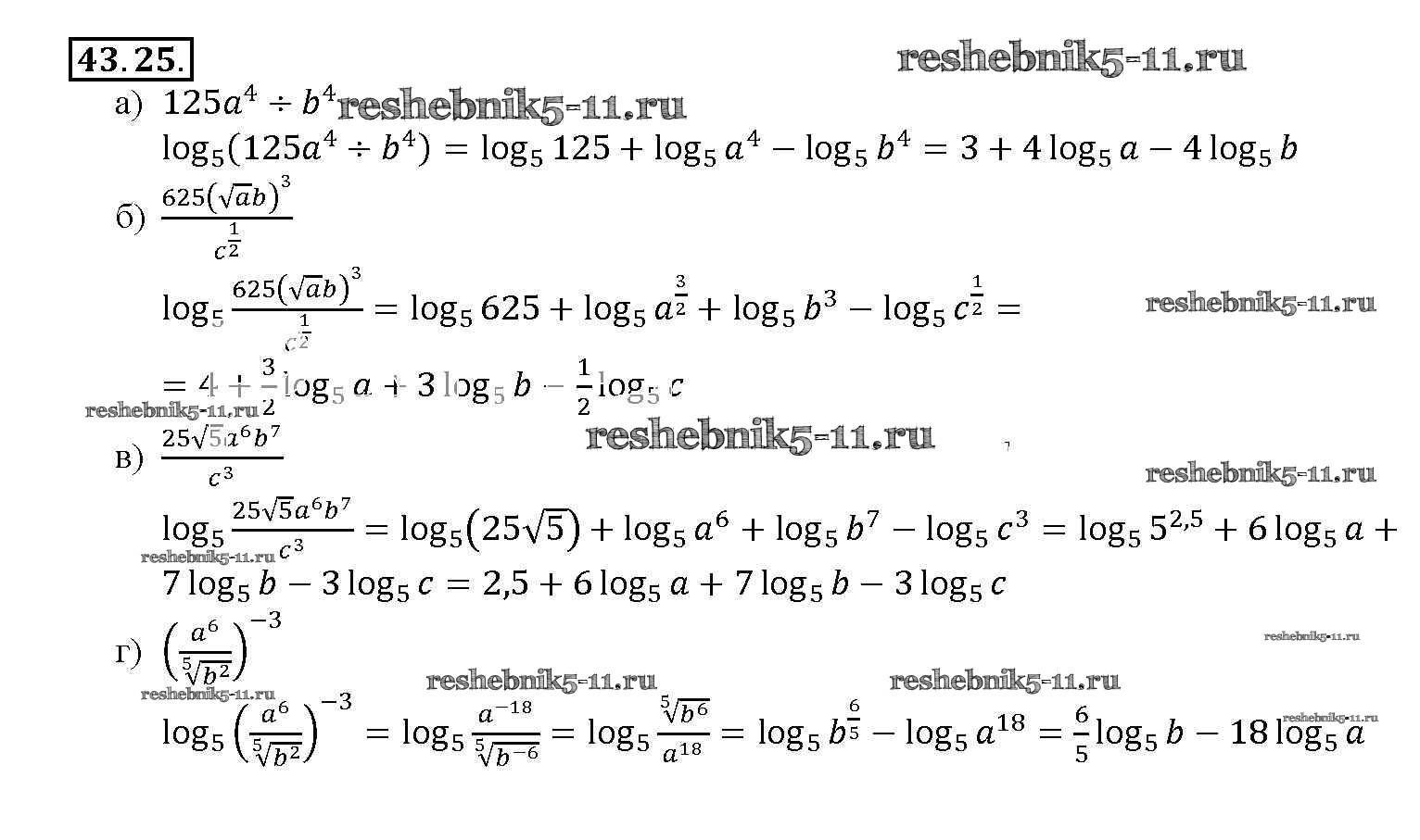 Готовая домашняя работа с ответами по Алгебре за 10, 11 класс Мордкович, Денищева, Корешкова, Мишустина, Семёнов, Тульчинская Задачник Базовый уровень Часть 2 Мнемозина 2015 ФГОС - §43. Свойства логарифмов 43. 25