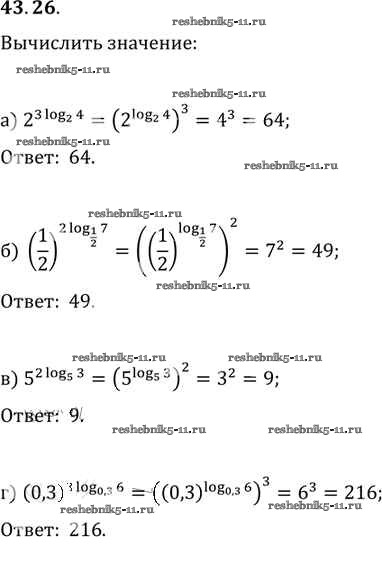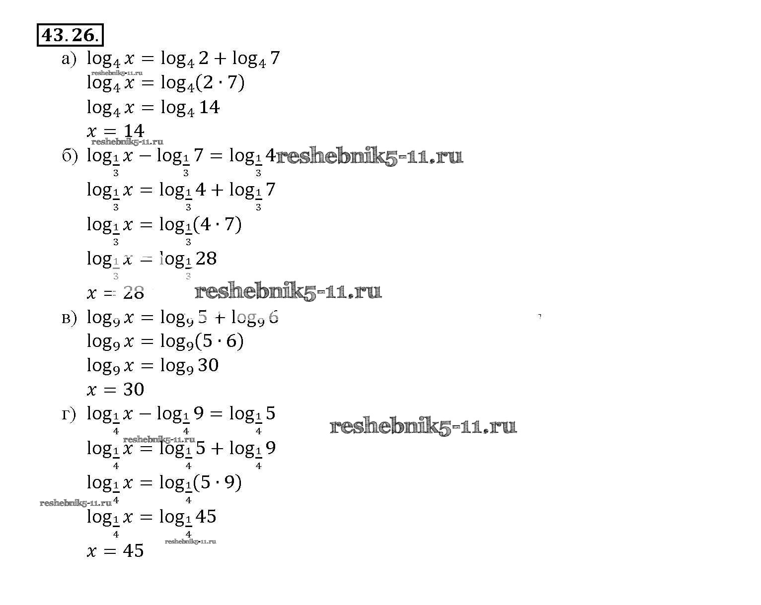 Готовая домашняя работа с ответами по Алгебре за 10, 11 класс Мордкович, Денищева, Корешкова, Мишустина, Семёнов, Тульчинская Задачник Базовый уровень Часть 2 Мнемозина 2015 ФГОС - §43. Свойства логарифмов 43. 26