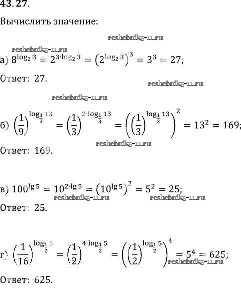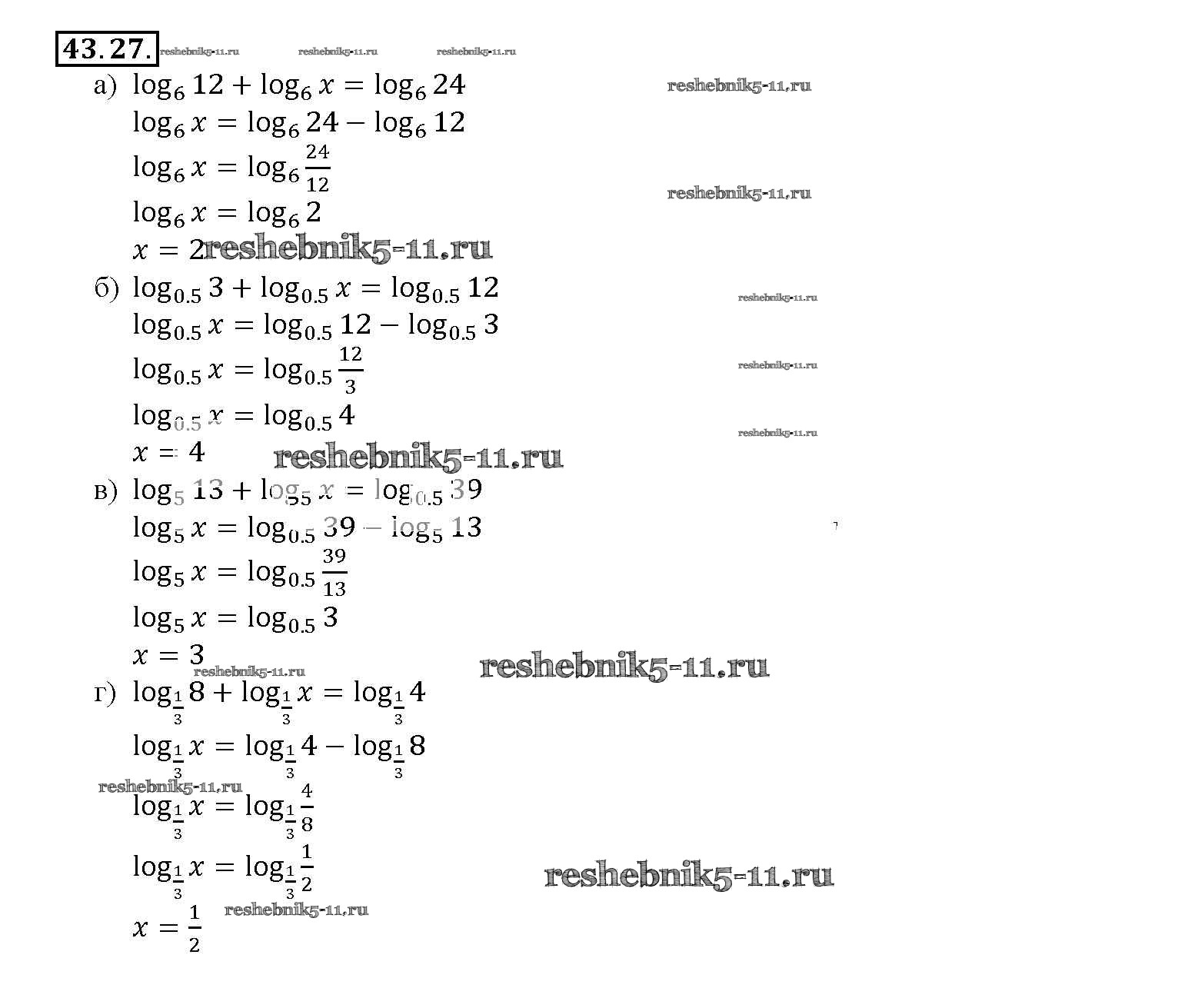 Готовая домашняя работа с ответами по Алгебре за 10, 11 класс Мордкович, Денищева, Корешкова, Мишустина, Семёнов, Тульчинская Задачник Базовый уровень Часть 2 Мнемозина 2015 ФГОС - §43. Свойства логарифмов 43. 27