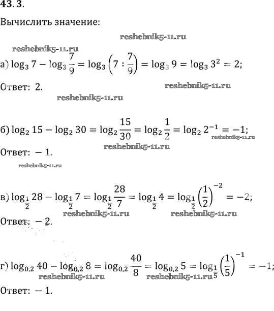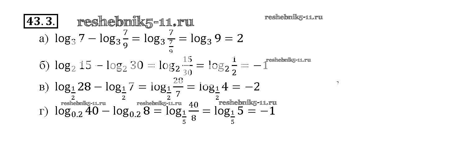 Готовая домашняя работа с ответами по Алгебре за 10, 11 класс Мордкович, Денищева, Корешкова, Мишустина, Семёнов, Тульчинская Задачник Базовый уровень Часть 2 Мнемозина 2015 ФГОС - §43. Свойства логарифмов 43. 3