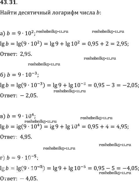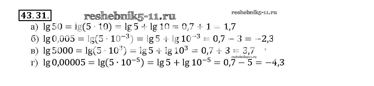 Готовая домашняя работа с ответами по Алгебре за 10, 11 класс Мордкович, Денищева, Корешкова, Мишустина, Семёнов, Тульчинская Задачник Базовый уровень Часть 2 Мнемозина 2015 ФГОС - §43. Свойства логарифмов 43. 31