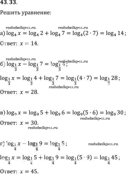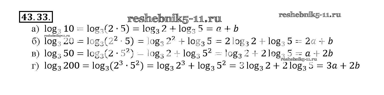 Готовая домашняя работа с ответами по Алгебре за 10, 11 класс Мордкович, Денищева, Корешкова, Мишустина, Семёнов, Тульчинская Задачник Базовый уровень Часть 2 Мнемозина 2015 ФГОС - §43. Свойства логарифмов 43. 33