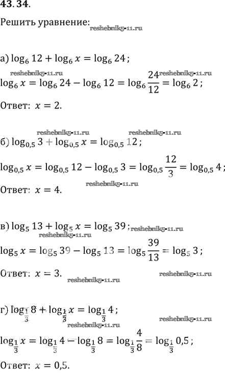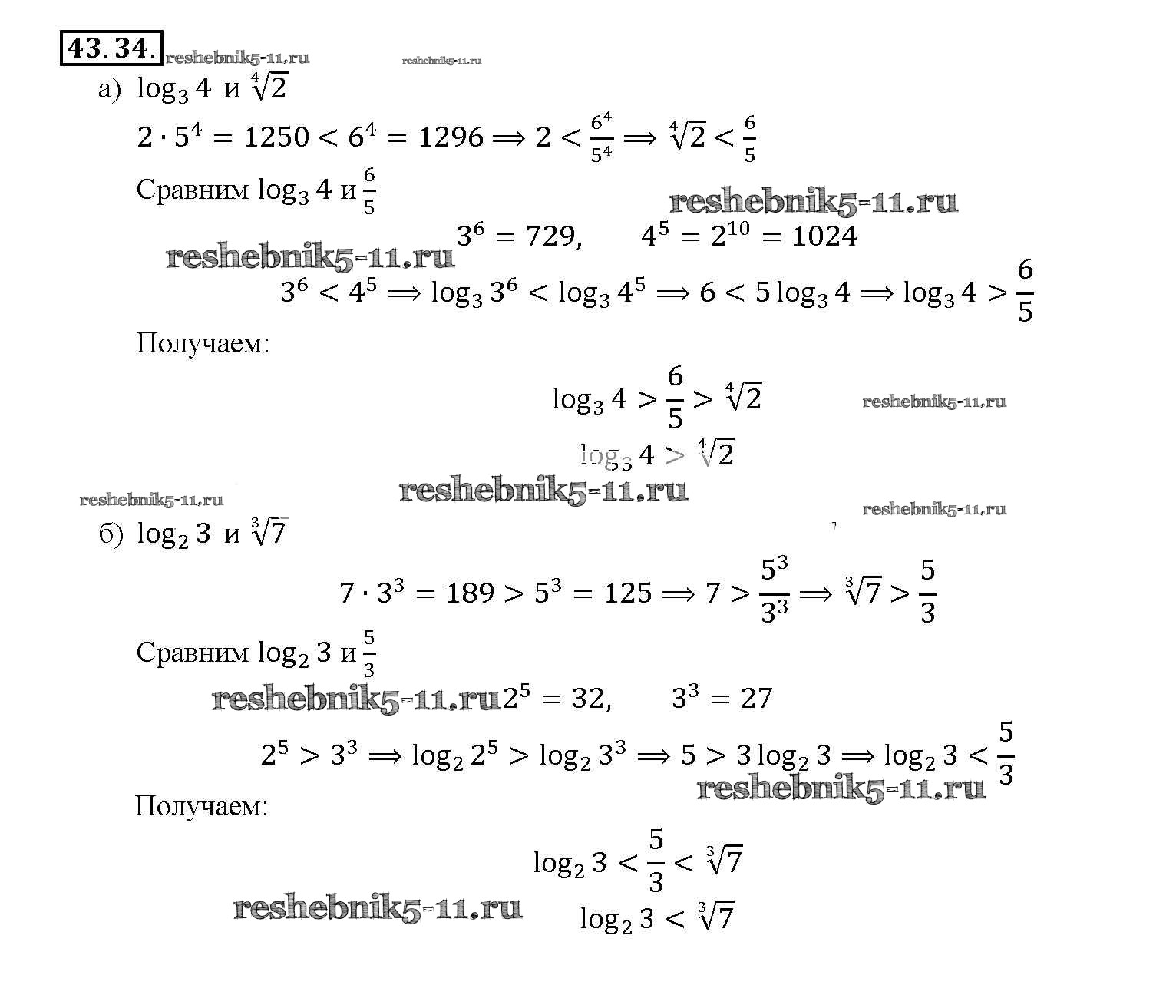 Готовая домашняя работа с ответами по Алгебре за 10, 11 класс Мордкович, Денищева, Корешкова, Мишустина, Семёнов, Тульчинская Задачник Базовый уровень Часть 2 Мнемозина 2015 ФГОС - §43. Свойства логарифмов 43. 34