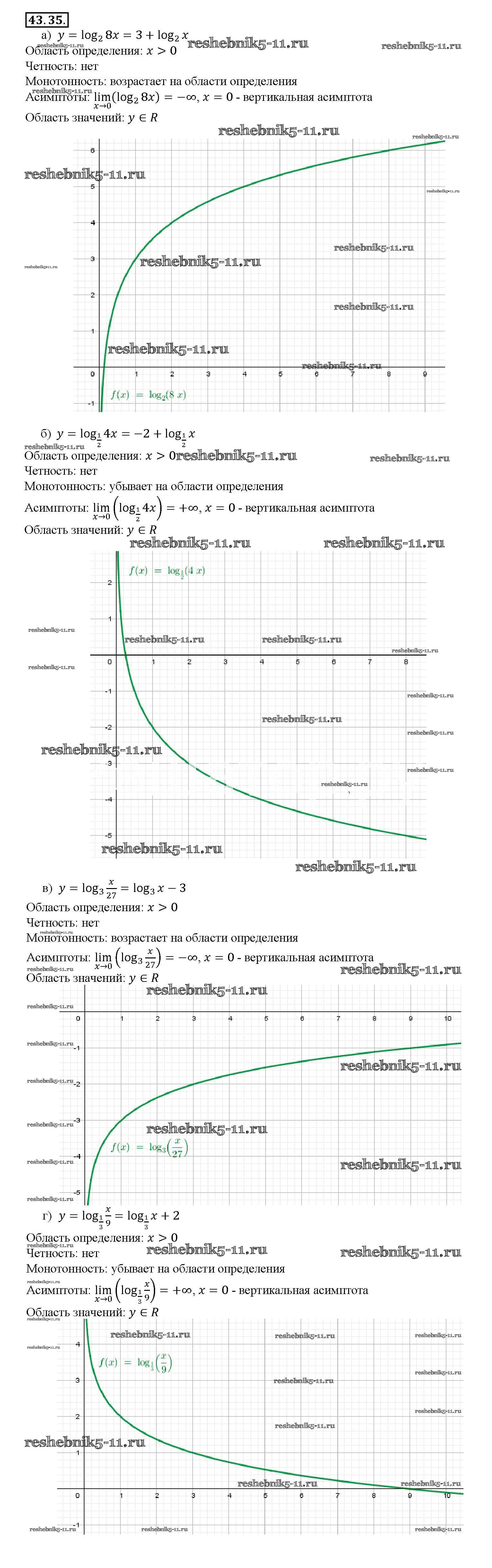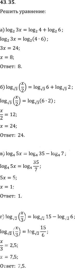 Готовая домашняя работа с ответами по Алгебре за 10, 11 класс Мордкович, Денищева, Корешкова, Мишустина, Семёнов, Тульчинская Задачник Базовый уровень Часть 2 Мнемозина 2015 ФГОС - §43. Свойства логарифмов 43. 35