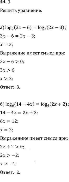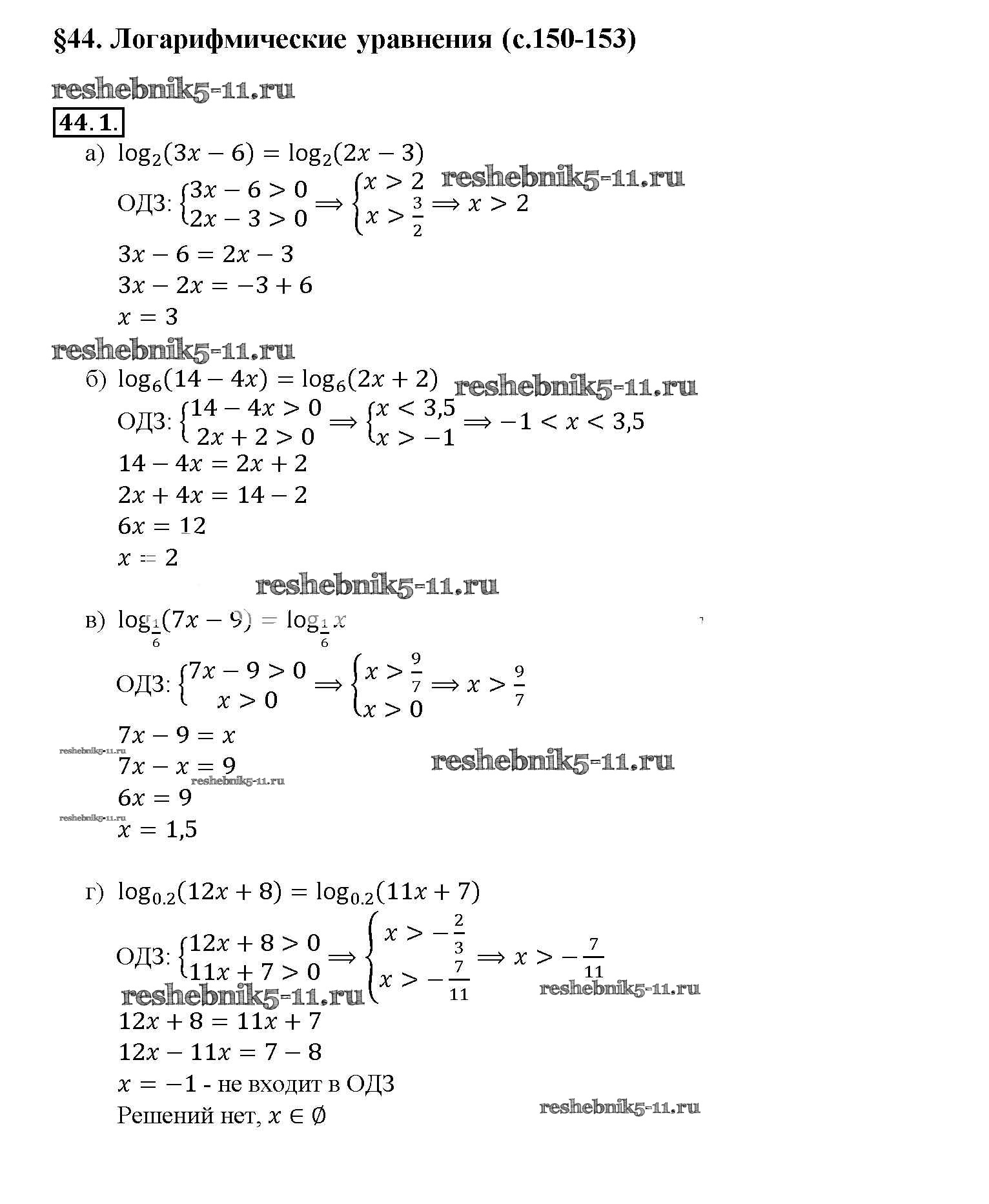 Готовая домашняя работа с ответами по Алгебре за 10, 11 класс Мордкович, Денищева, Корешкова, Мишустина, Семёнов, Тульчинская Задачник Базовый уровень Часть 2 Мнемозина 2015 ФГОС - §44. Логарифмические уравнения 44. 1