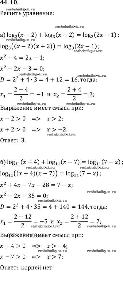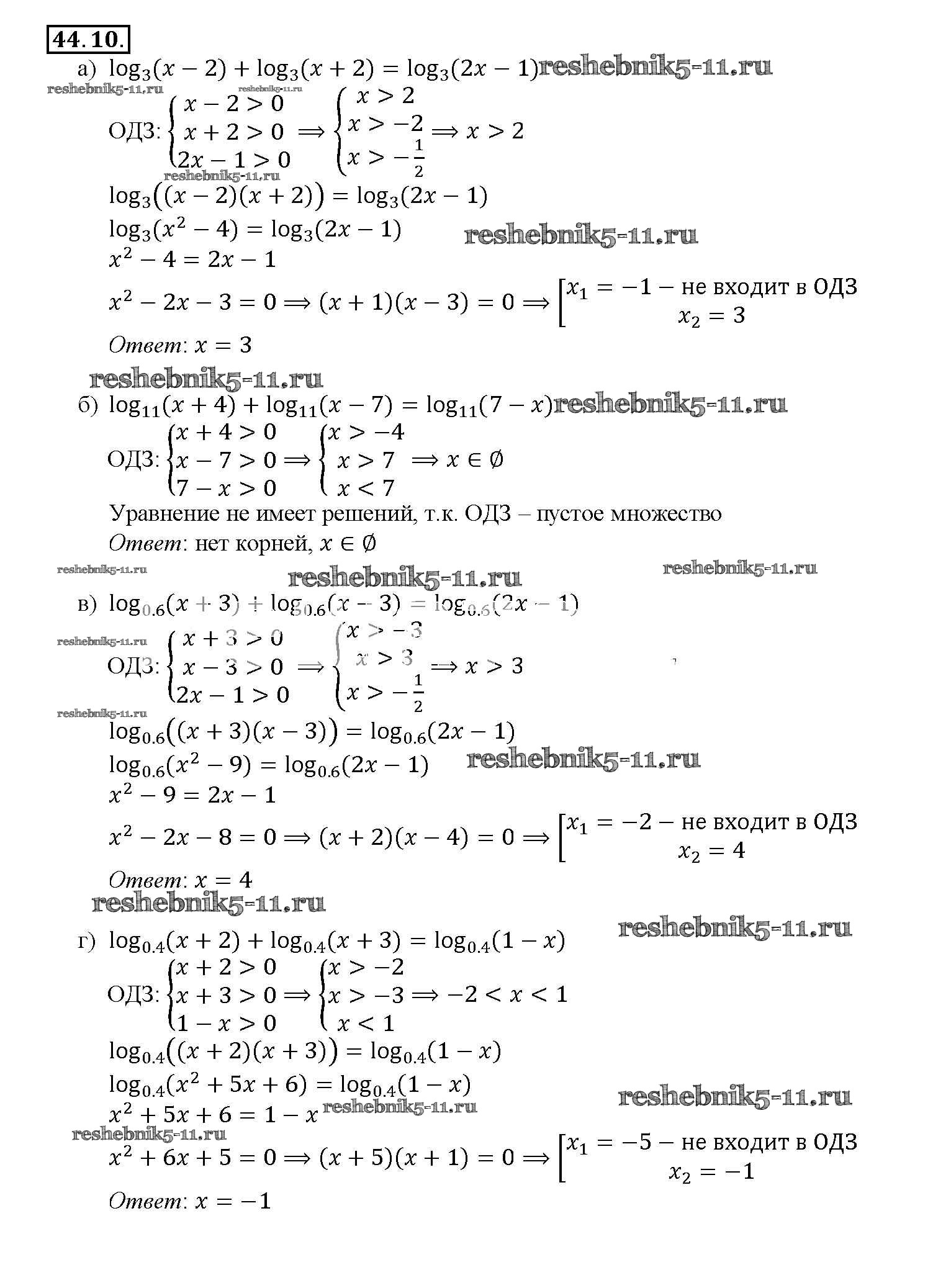 Готовая домашняя работа с ответами по Алгебре за 10, 11 класс Мордкович, Денищева, Корешкова, Мишустина, Семёнов, Тульчинская Задачник Базовый уровень Часть 2 Мнемозина 2015 ФГОС - §44. Логарифмические уравнения 44. 10