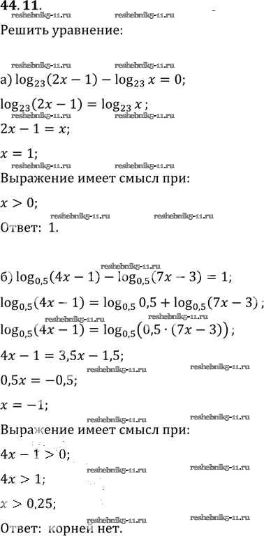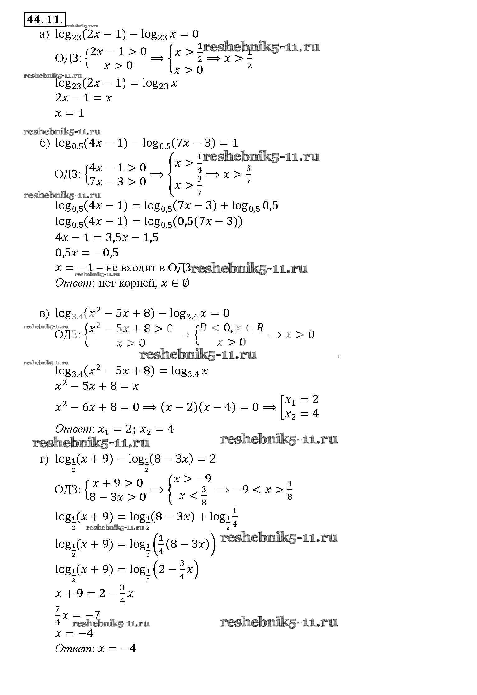Готовая домашняя работа с ответами по Алгебре за 10, 11 класс Мордкович, Денищева, Корешкова, Мишустина, Семёнов, Тульчинская Задачник Базовый уровень Часть 2 Мнемозина 2015 ФГОС - §44. Логарифмические уравнения 44. 11