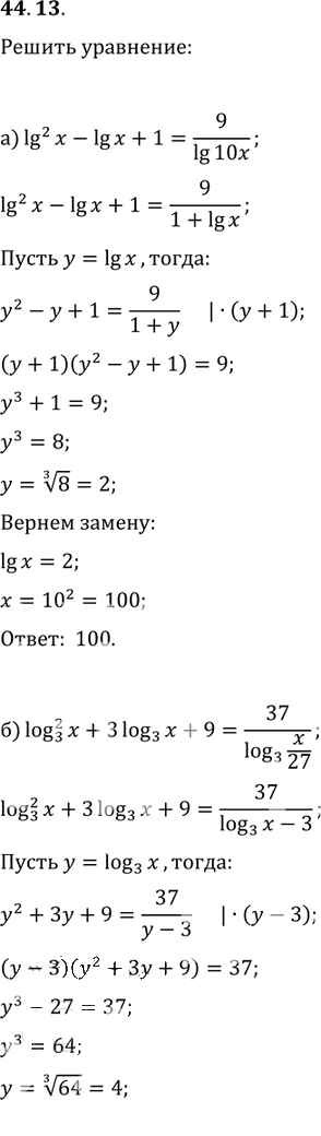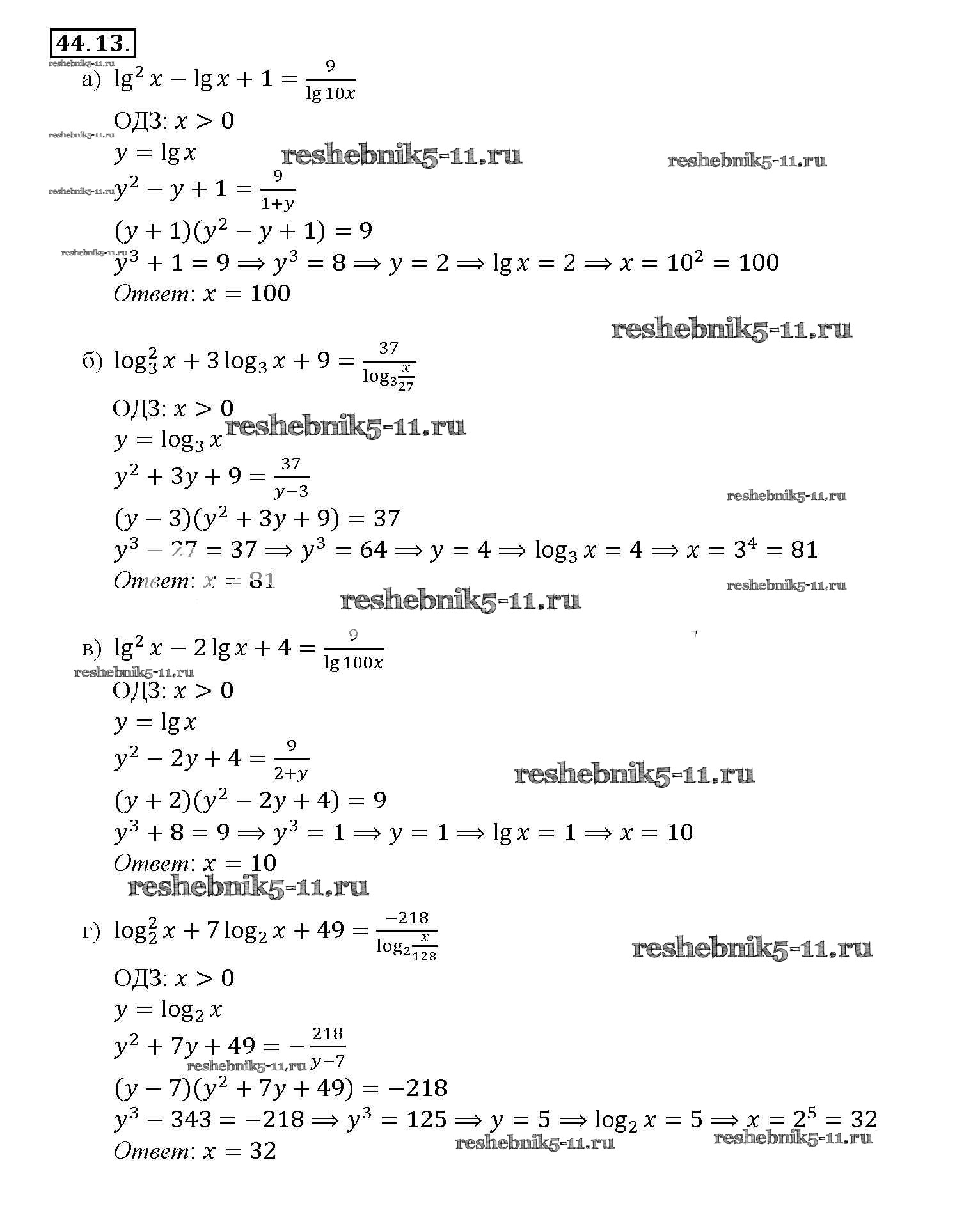 Готовая домашняя работа с ответами по Алгебре за 10, 11 класс Мордкович, Денищева, Корешкова, Мишустина, Семёнов, Тульчинская Задачник Базовый уровень Часть 2 Мнемозина 2015 ФГОС - §44. Логарифмические уравнения 44. 13