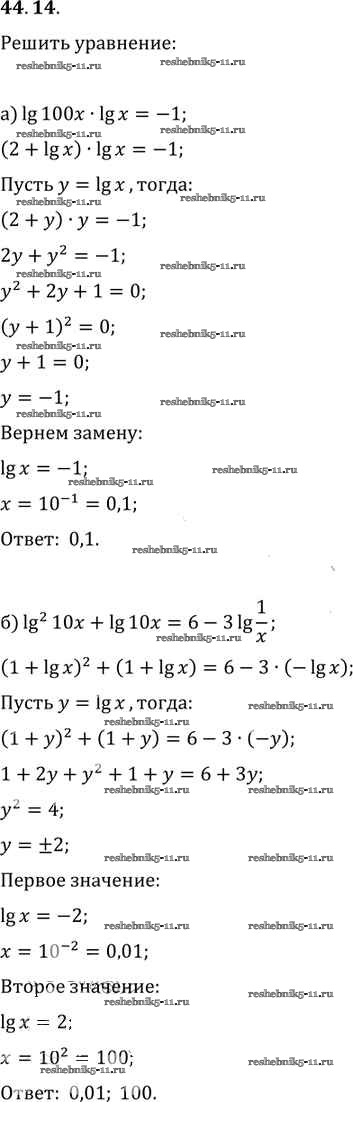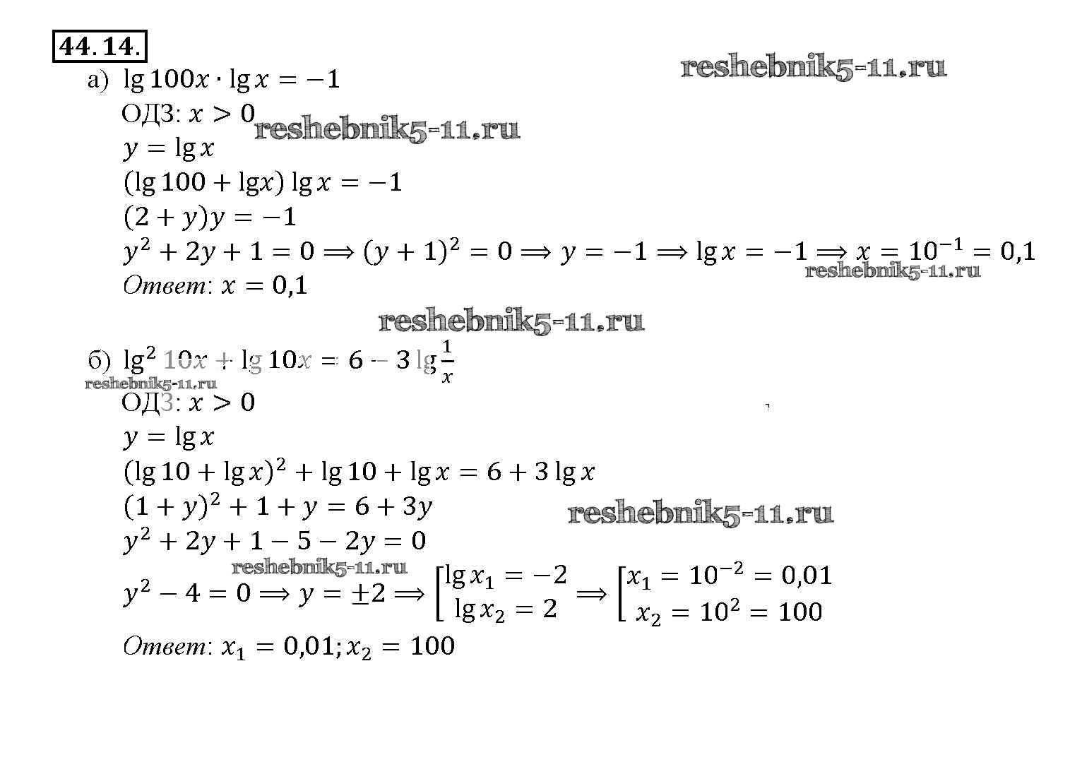 Готовая домашняя работа с ответами по Алгебре за 10, 11 класс Мордкович, Денищева, Корешкова, Мишустина, Семёнов, Тульчинская Задачник Базовый уровень Часть 2 Мнемозина 2015 ФГОС - §44. Логарифмические уравнения 44. 14