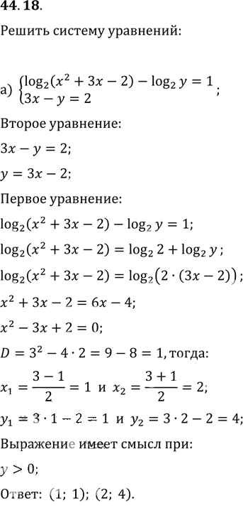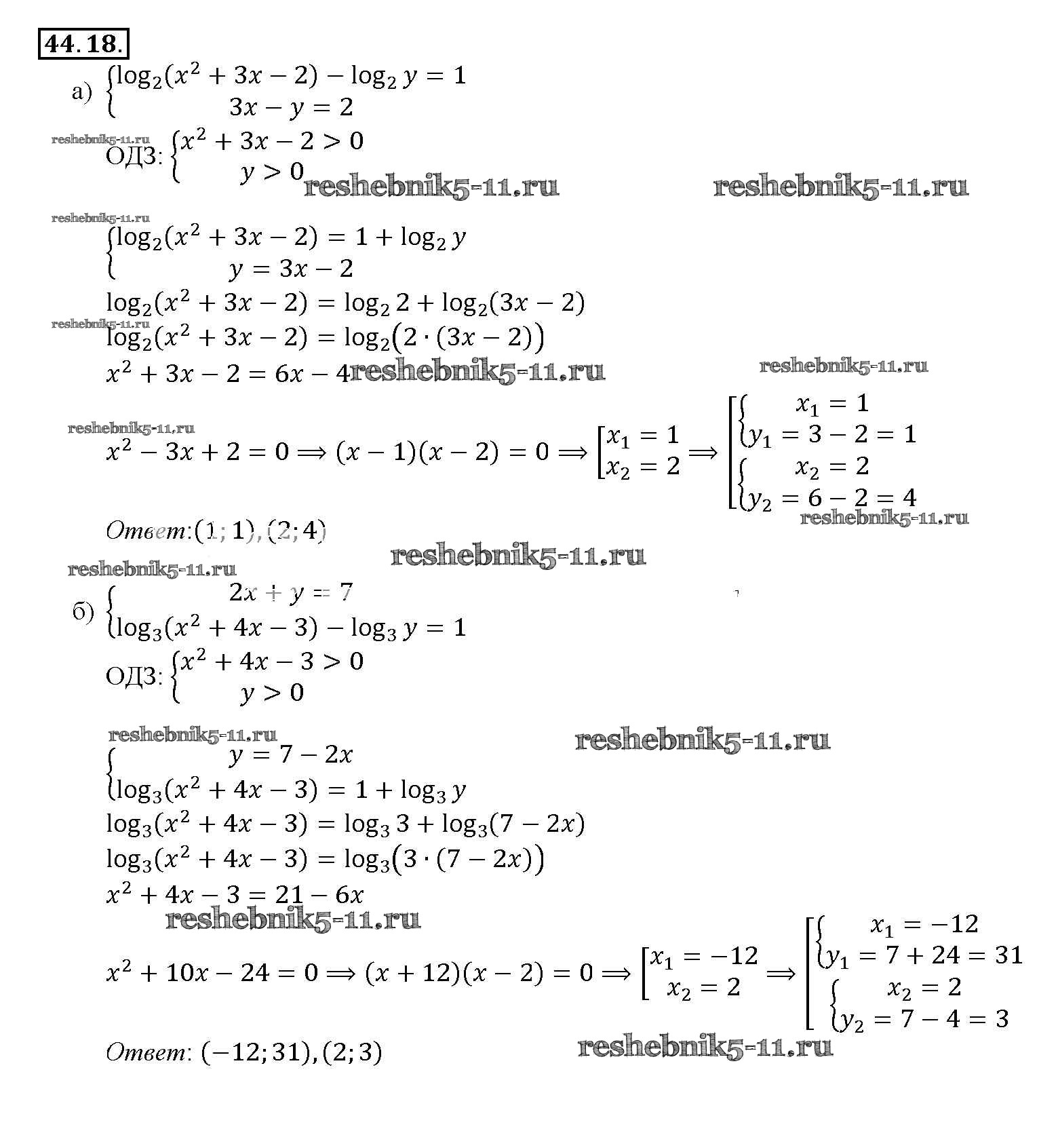 Готовая домашняя работа с ответами по Алгебре за 10, 11 класс Мордкович, Денищева, Корешкова, Мишустина, Семёнов, Тульчинская Задачник Базовый уровень Часть 2 Мнемозина 2015 ФГОС - §44. Логарифмические уравнения 44. 18