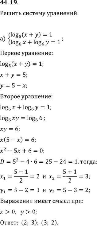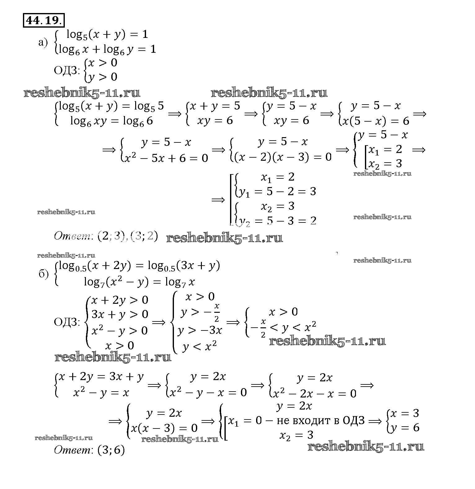 Готовая домашняя работа с ответами по Алгебре за 10, 11 класс Мордкович, Денищева, Корешкова, Мишустина, Семёнов, Тульчинская Задачник Базовый уровень Часть 2 Мнемозина 2015 ФГОС - §44. Логарифмические уравнения 44. 19