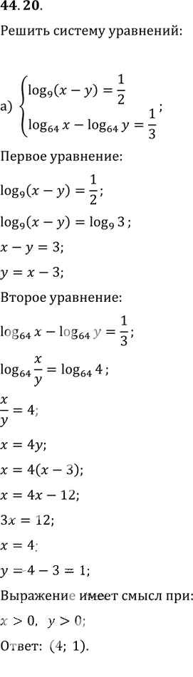 Готовая домашняя работа с ответами по Алгебре за 10, 11 класс Мордкович, Денищева, Корешкова, Мишустина, Семёнов, Тульчинская Задачник Базовый уровень Часть 2 Мнемозина 2015 ФГОС - §44. Логарифмические уравнения 44. 20