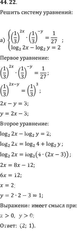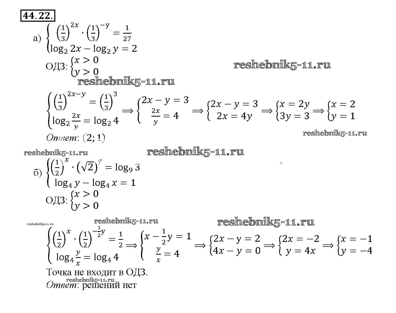 Готовая домашняя работа с ответами по Алгебре за 10, 11 класс Мордкович, Денищева, Корешкова, Мишустина, Семёнов, Тульчинская Задачник Базовый уровень Часть 2 Мнемозина 2015 ФГОС - §44. Логарифмические уравнения 44. 22