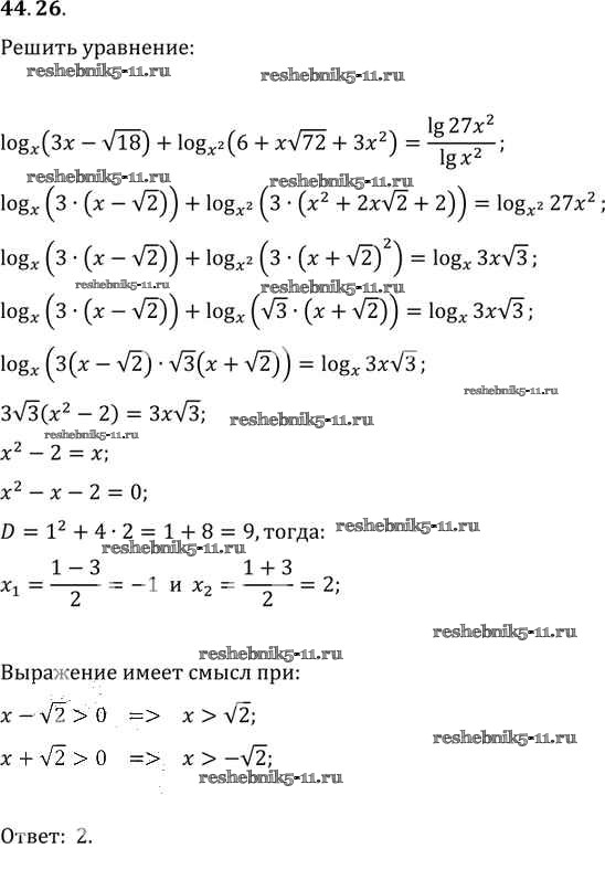 Готовая домашняя работа с ответами по Алгебре за 10, 11 класс Мордкович, Денищева, Корешкова, Мишустина, Семёнов, Тульчинская Задачник Базовый уровень Часть 2 Мнемозина 2015 ФГОС - §44. Логарифмические уравнения 44. 26