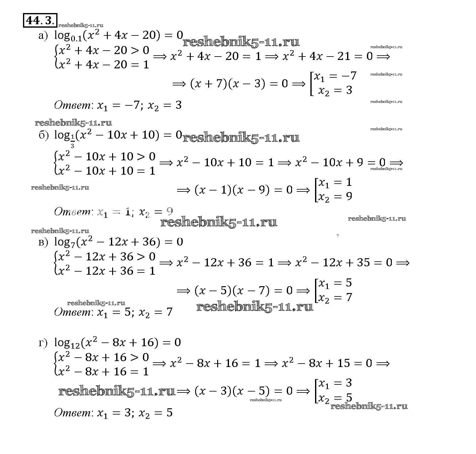 Готовая домашняя работа с ответами по Алгебре за 10, 11 класс Мордкович, Денищева, Корешкова, Мишустина, Семёнов, Тульчинская Задачник Базовый уровень Часть 2 Мнемозина 2015 ФГОС - §44. Логарифмические уравнения 44. 3