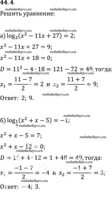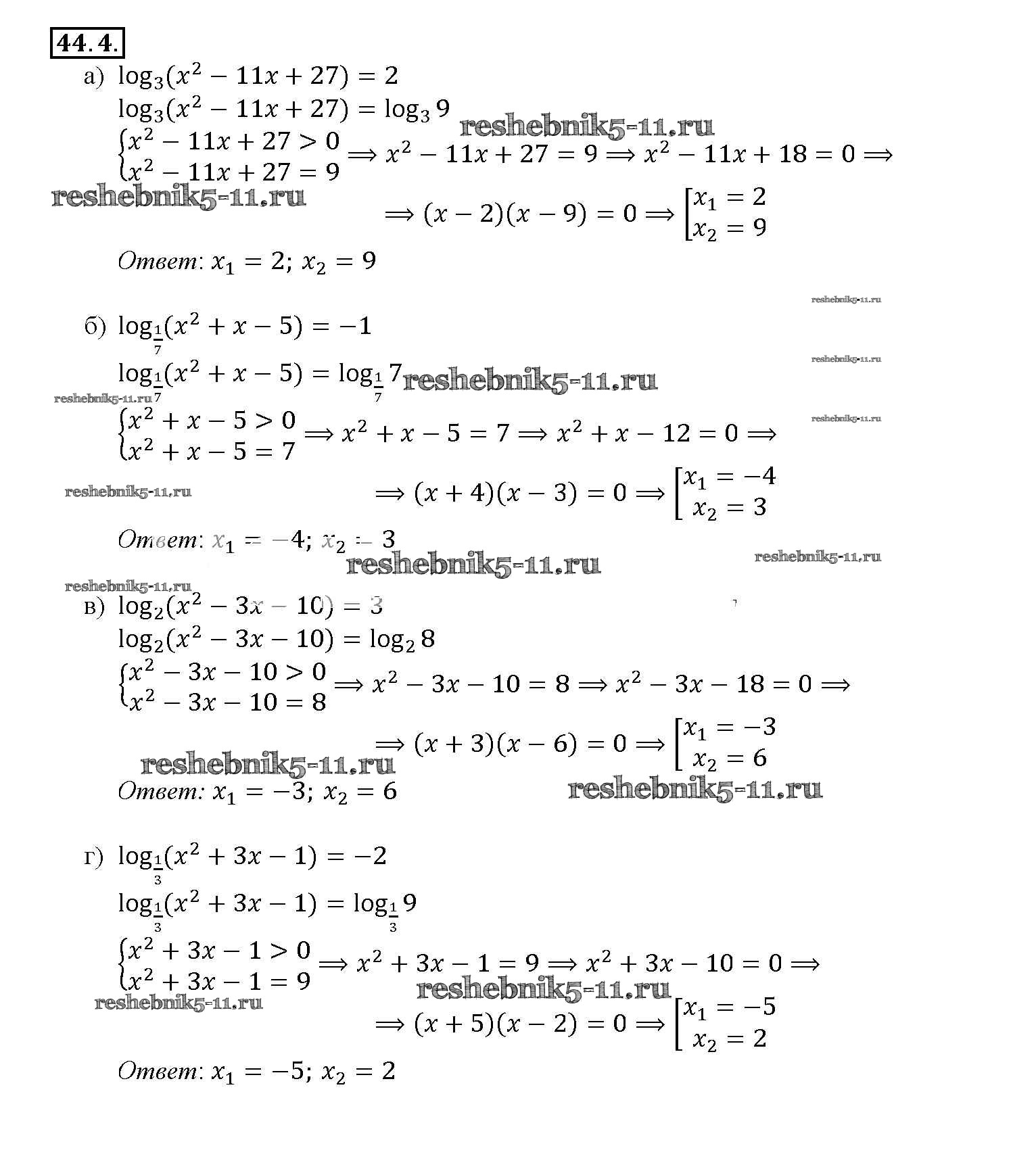 Готовая домашняя работа с ответами по Алгебре за 10, 11 класс Мордкович, Денищева, Корешкова, Мишустина, Семёнов, Тульчинская Задачник Базовый уровень Часть 2 Мнемозина 2015 ФГОС - §44. Логарифмические уравнения 44. 4