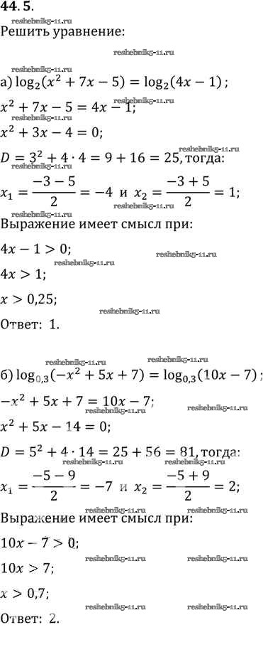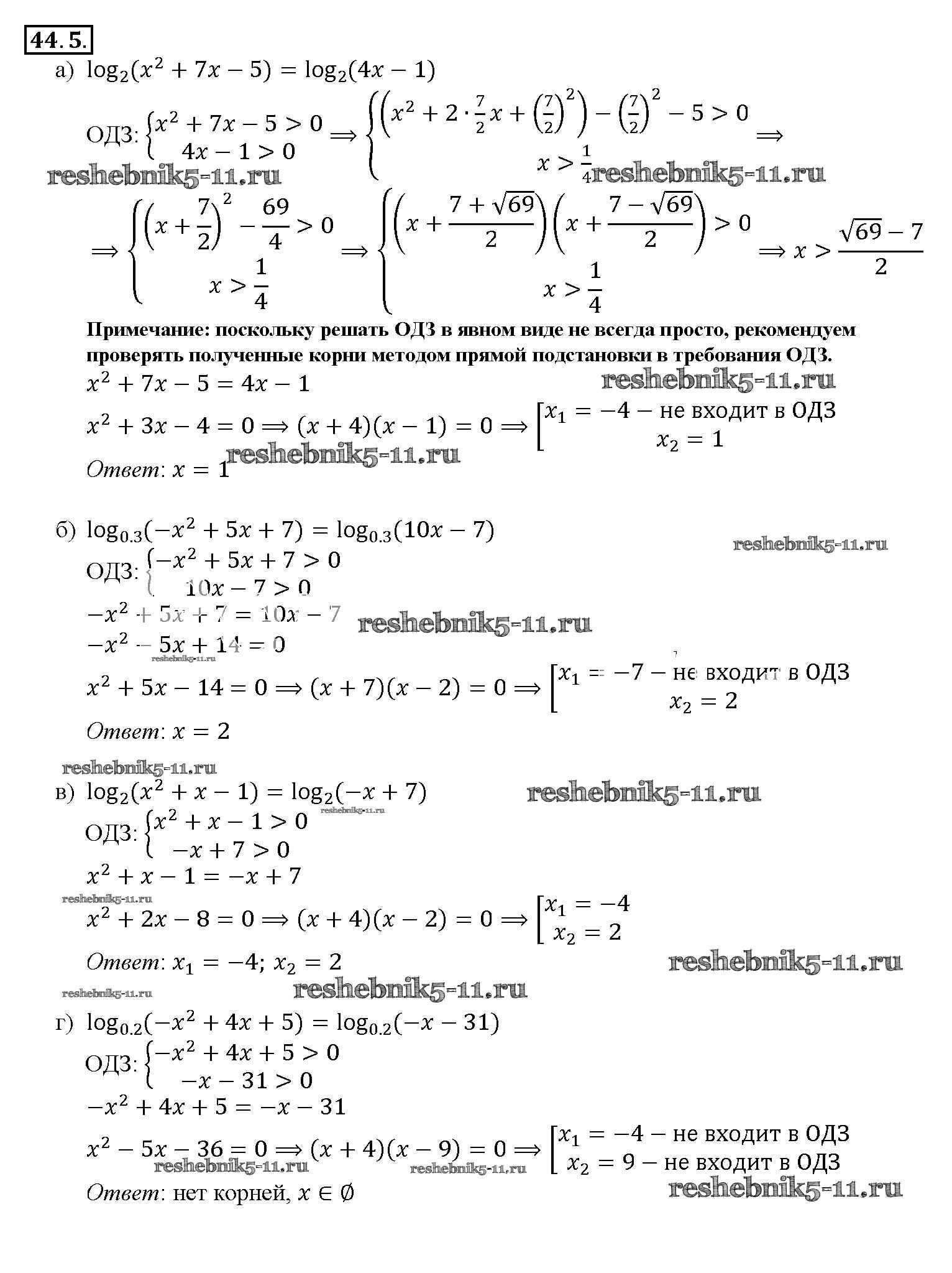 Готовая домашняя работа с ответами по Алгебре за 10, 11 класс Мордкович, Денищева, Корешкова, Мишустина, Семёнов, Тульчинская Задачник Базовый уровень Часть 2 Мнемозина 2015 ФГОС - §44. Логарифмические уравнения 44. 5