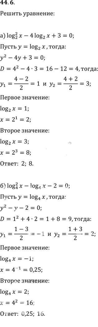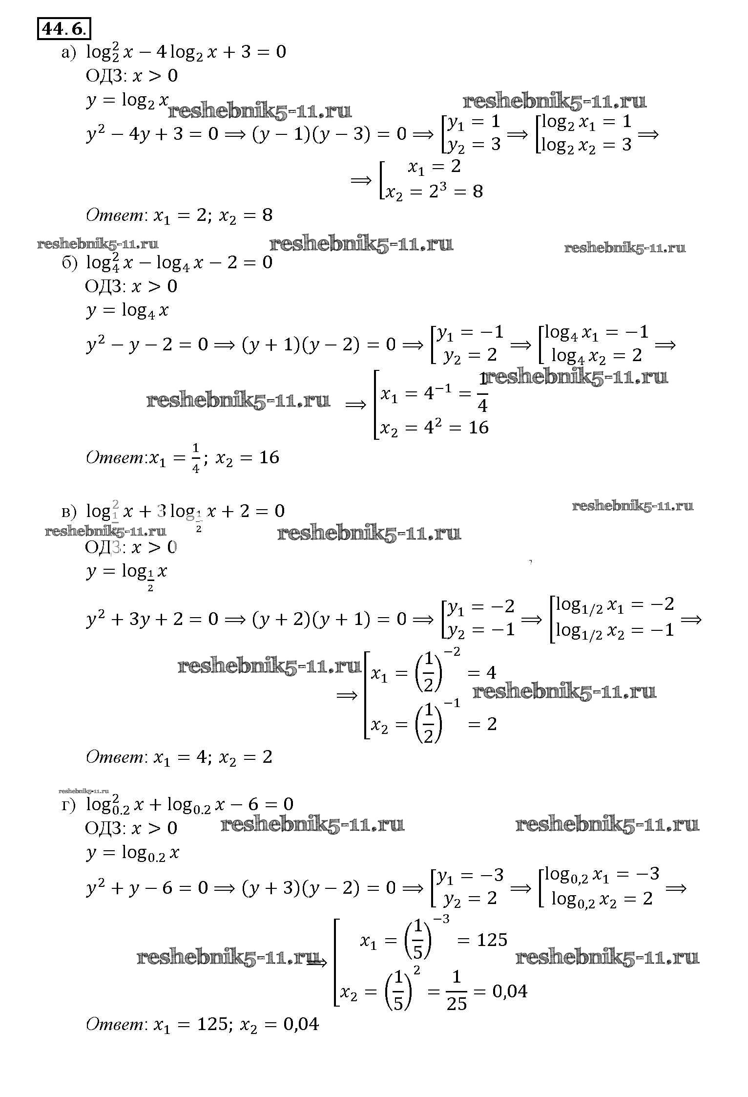Готовая домашняя работа с ответами по Алгебре за 10, 11 класс Мордкович, Денищева, Корешкова, Мишустина, Семёнов, Тульчинская Задачник Базовый уровень Часть 2 Мнемозина 2015 ФГОС - §44. Логарифмические уравнения 44. 6
