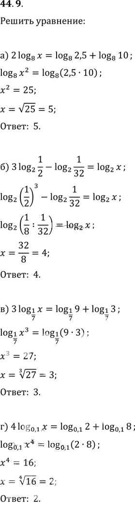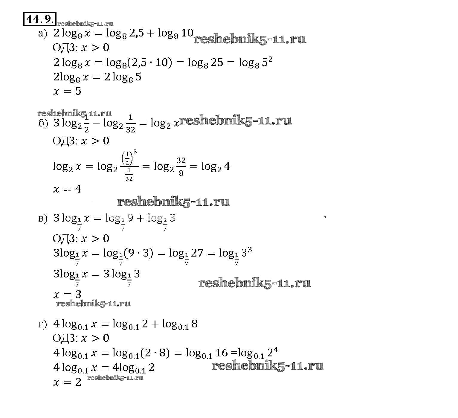 Готовая домашняя работа с ответами по Алгебре за 10, 11 класс Мордкович, Денищева, Корешкова, Мишустина, Семёнов, Тульчинская Задачник Базовый уровень Часть 2 Мнемозина 2015 ФГОС - §44. Логарифмические уравнения 44. 9