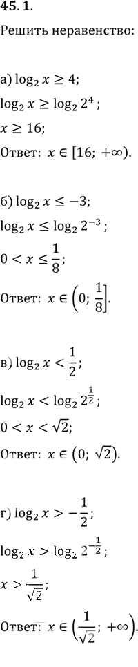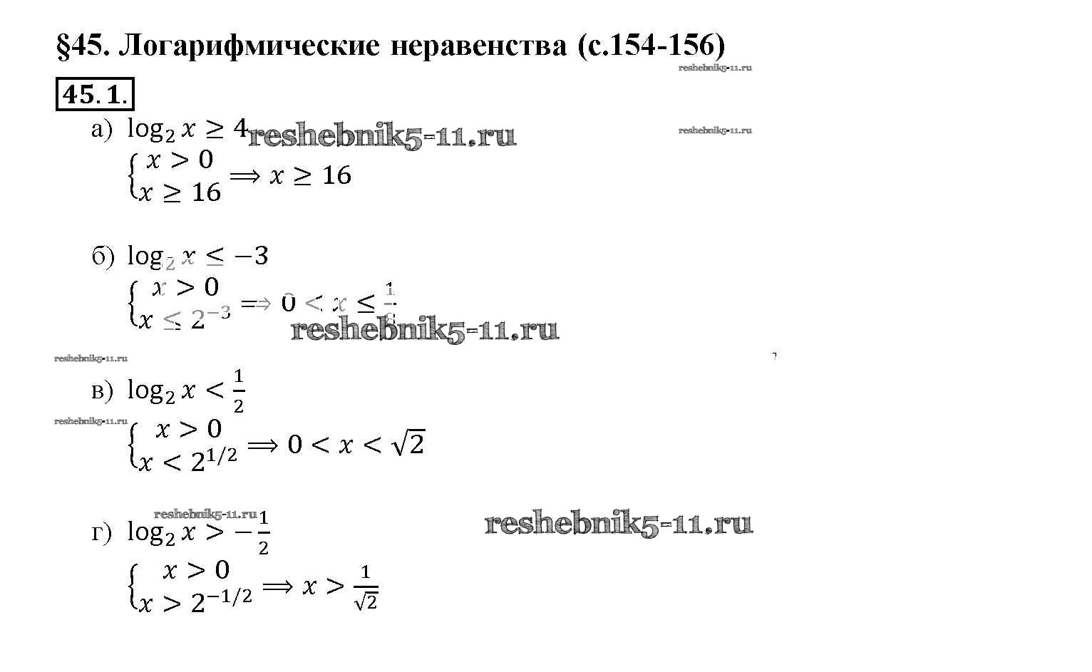 Готовая домашняя работа с ответами по Алгебре за 10, 11 класс Мордкович, Денищева, Корешкова, Мишустина, Семёнов, Тульчинская Задачник Базовый уровень Часть 2 Мнемозина 2015 ФГОС - §45. Логарифмические неравенства 45. 1