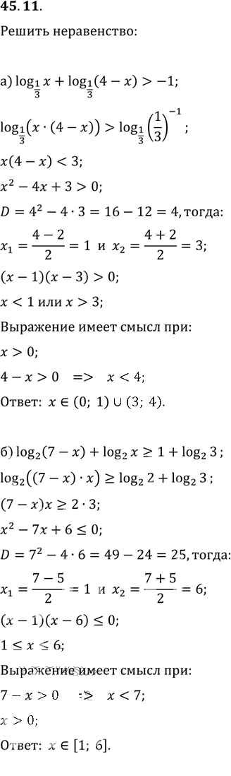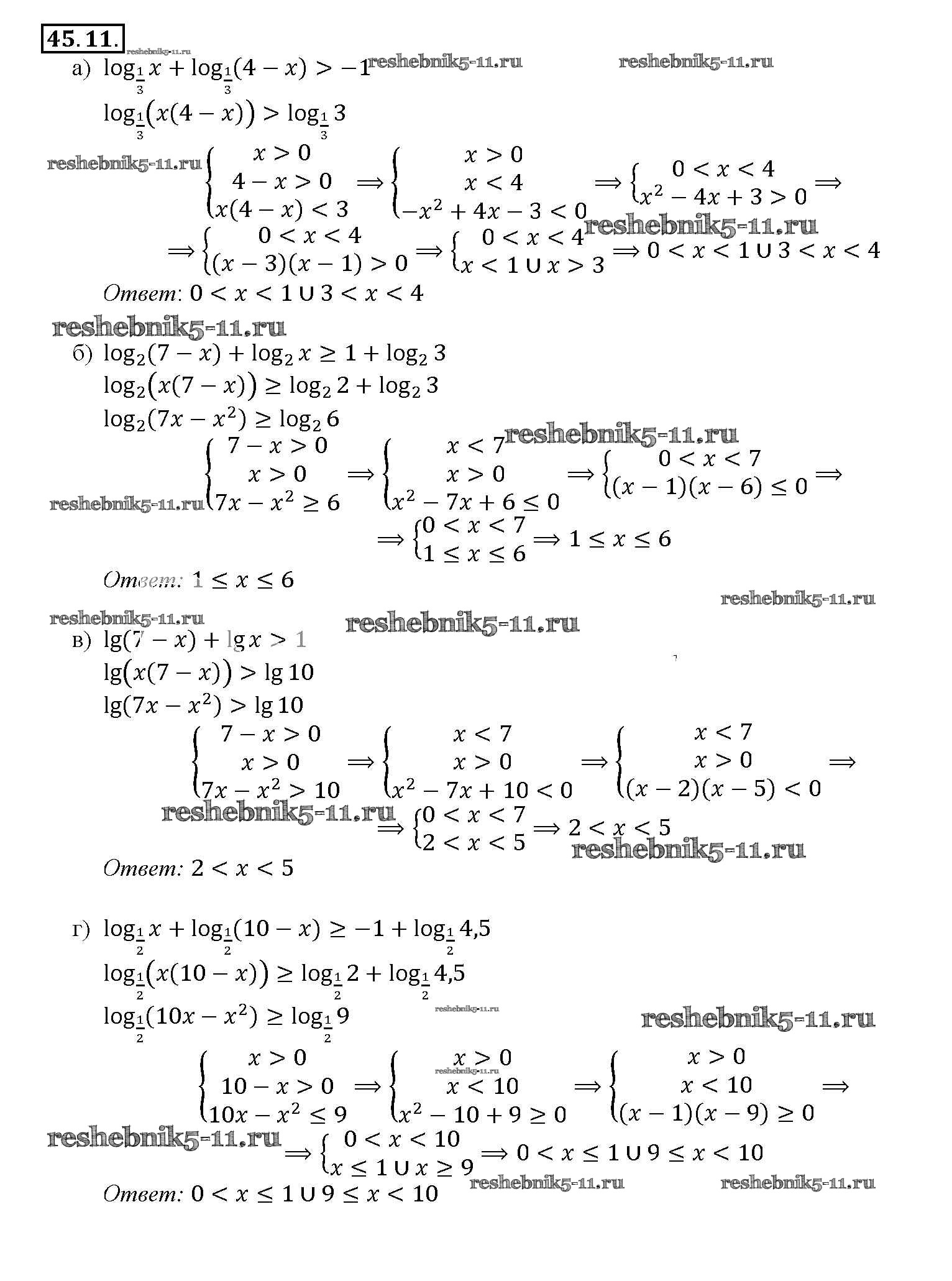 Готовая домашняя работа с ответами по Алгебре за 10, 11 класс Мордкович, Денищева, Корешкова, Мишустина, Семёнов, Тульчинская Задачник Базовый уровень Часть 2 Мнемозина 2015 ФГОС - §45. Логарифмические неравенства 45. 11