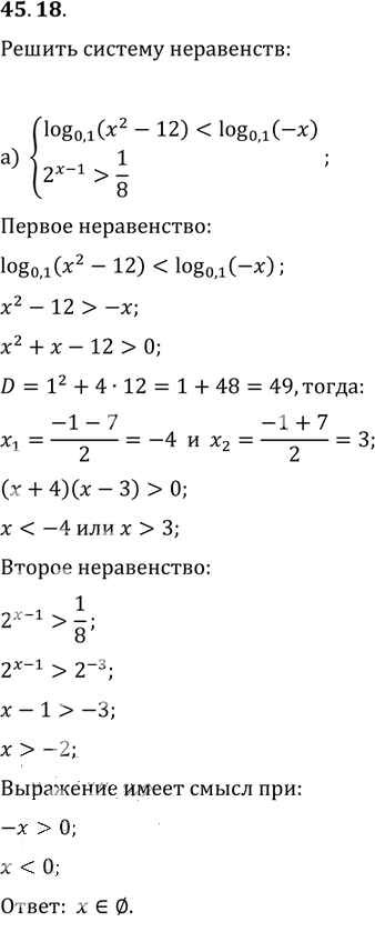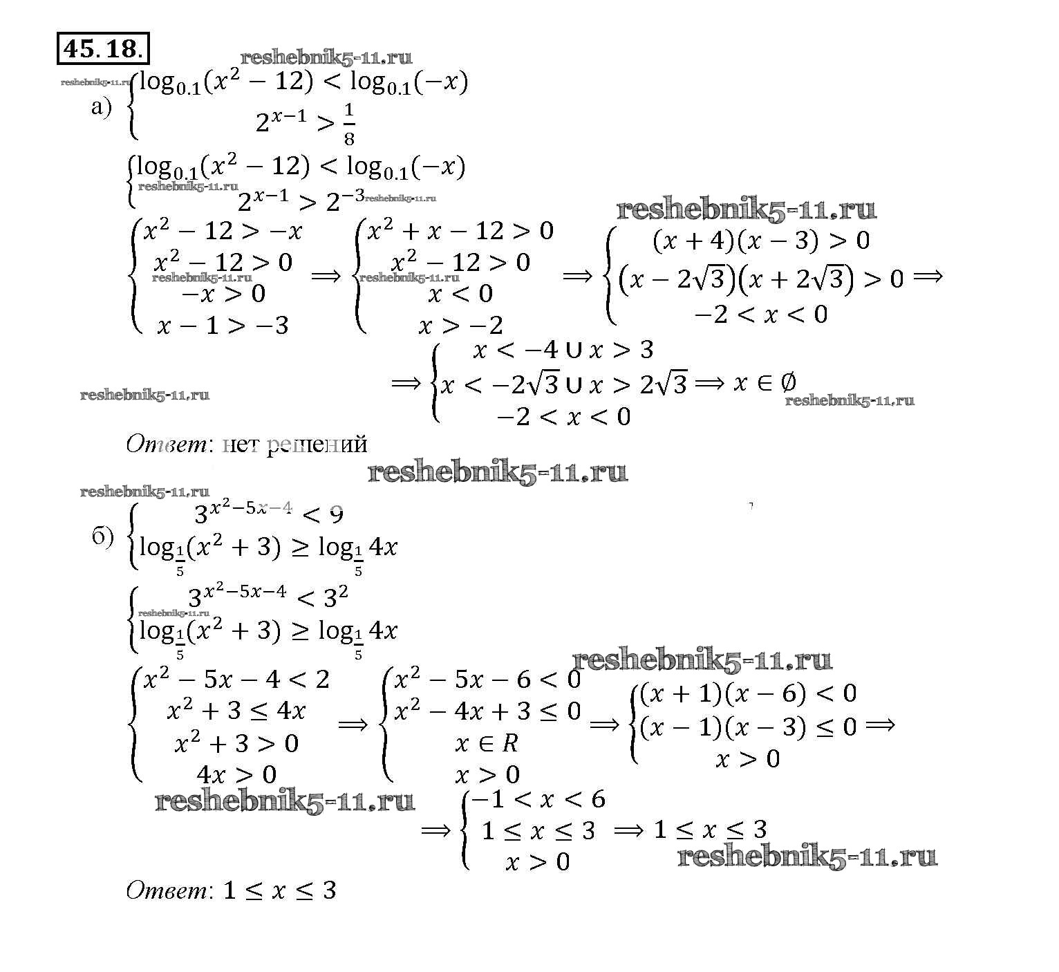 Готовая домашняя работа с ответами по Алгебре за 10, 11 класс Мордкович, Денищева, Корешкова, Мишустина, Семёнов, Тульчинская Задачник Базовый уровень Часть 2 Мнемозина 2015 ФГОС - §45. Логарифмические неравенства 45. 18