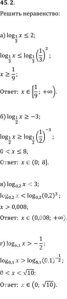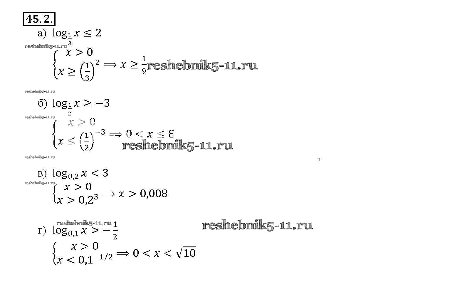Готовая домашняя работа с ответами по Алгебре за 10, 11 класс Мордкович, Денищева, Корешкова, Мишустина, Семёнов, Тульчинская Задачник Базовый уровень Часть 2 Мнемозина 2015 ФГОС - §45. Логарифмические неравенства 45. 2