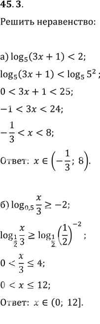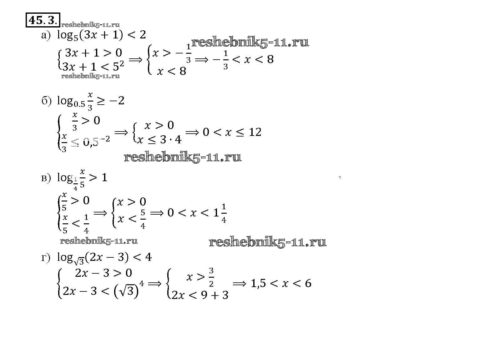 Готовая домашняя работа с ответами по Алгебре за 10, 11 класс Мордкович, Денищева, Корешкова, Мишустина, Семёнов, Тульчинская Задачник Базовый уровень Часть 2 Мнемозина 2015 ФГОС - §45. Логарифмические неравенства 45. 3