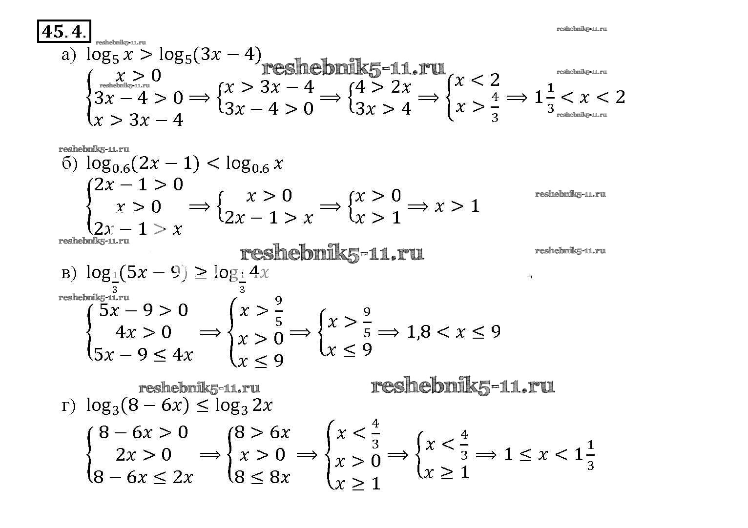 Готовая домашняя работа с ответами по Алгебре за 10, 11 класс Мордкович, Денищева, Корешкова, Мишустина, Семёнов, Тульчинская Задачник Базовый уровень Часть 2 Мнемозина 2015 ФГОС - §45. Логарифмические неравенства 45. 4