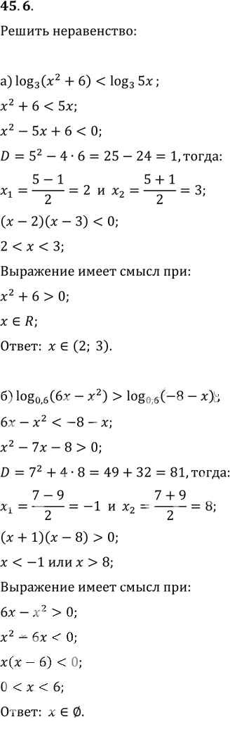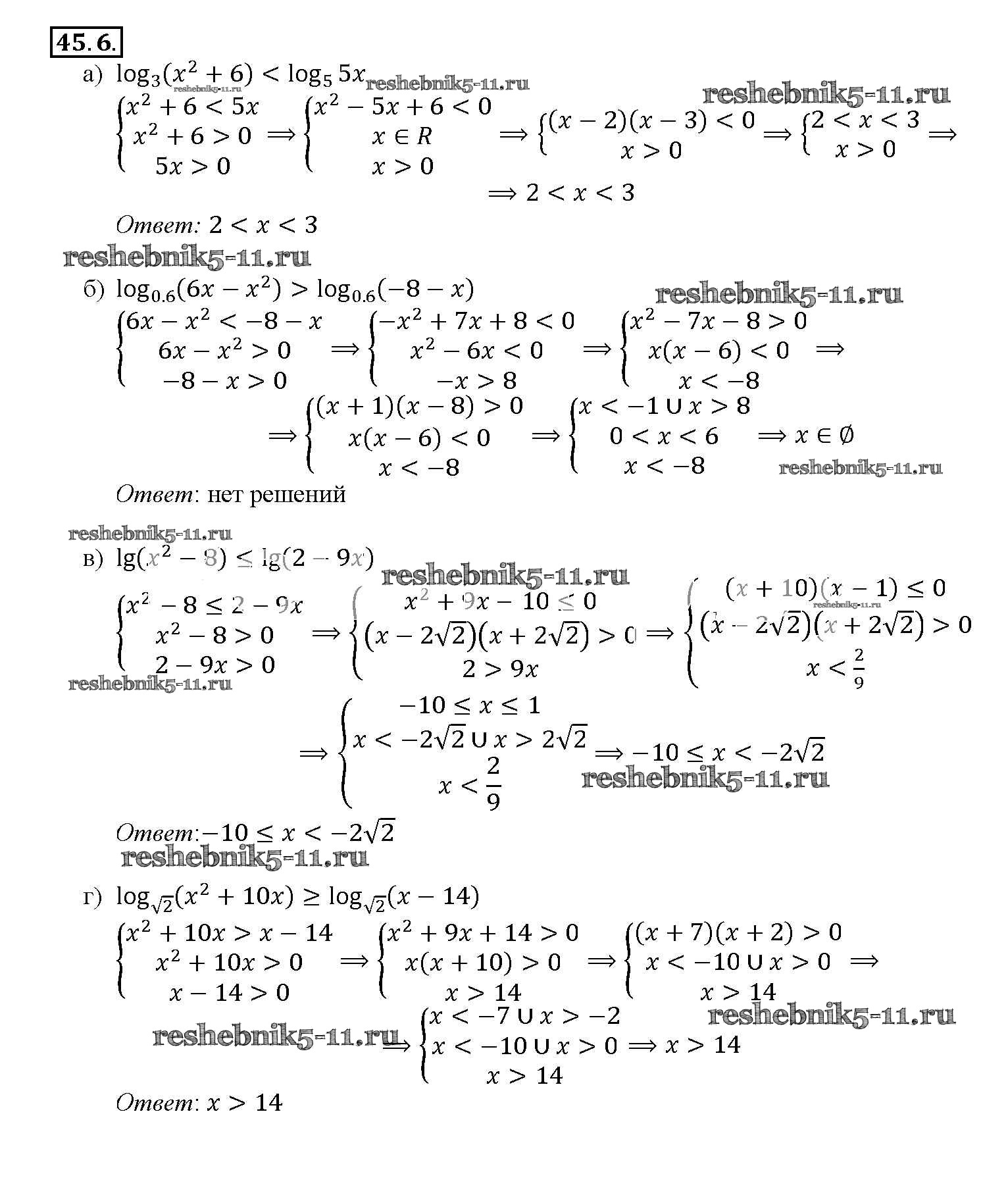 Готовая домашняя работа с ответами по Алгебре за 10, 11 класс Мордкович, Денищева, Корешкова, Мишустина, Семёнов, Тульчинская Задачник Базовый уровень Часть 2 Мнемозина 2015 ФГОС - §45. Логарифмические неравенства 45. 6