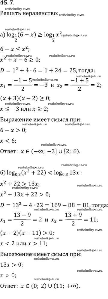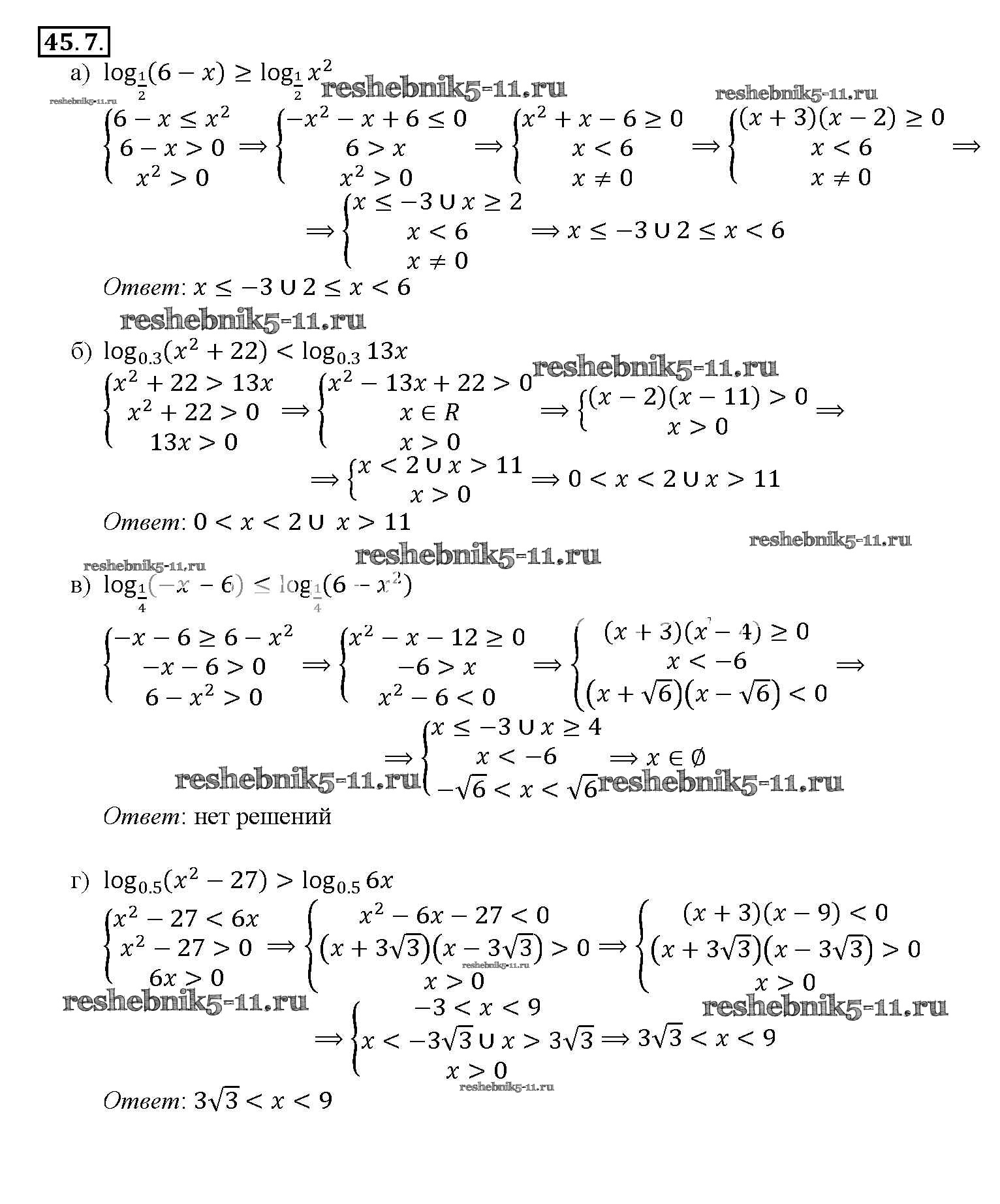 Готовая домашняя работа с ответами по Алгебре за 10, 11 класс Мордкович, Денищева, Корешкова, Мишустина, Семёнов, Тульчинская Задачник Базовый уровень Часть 2 Мнемозина 2015 ФГОС - §45. Логарифмические неравенства 45. 7