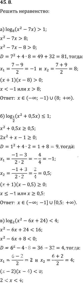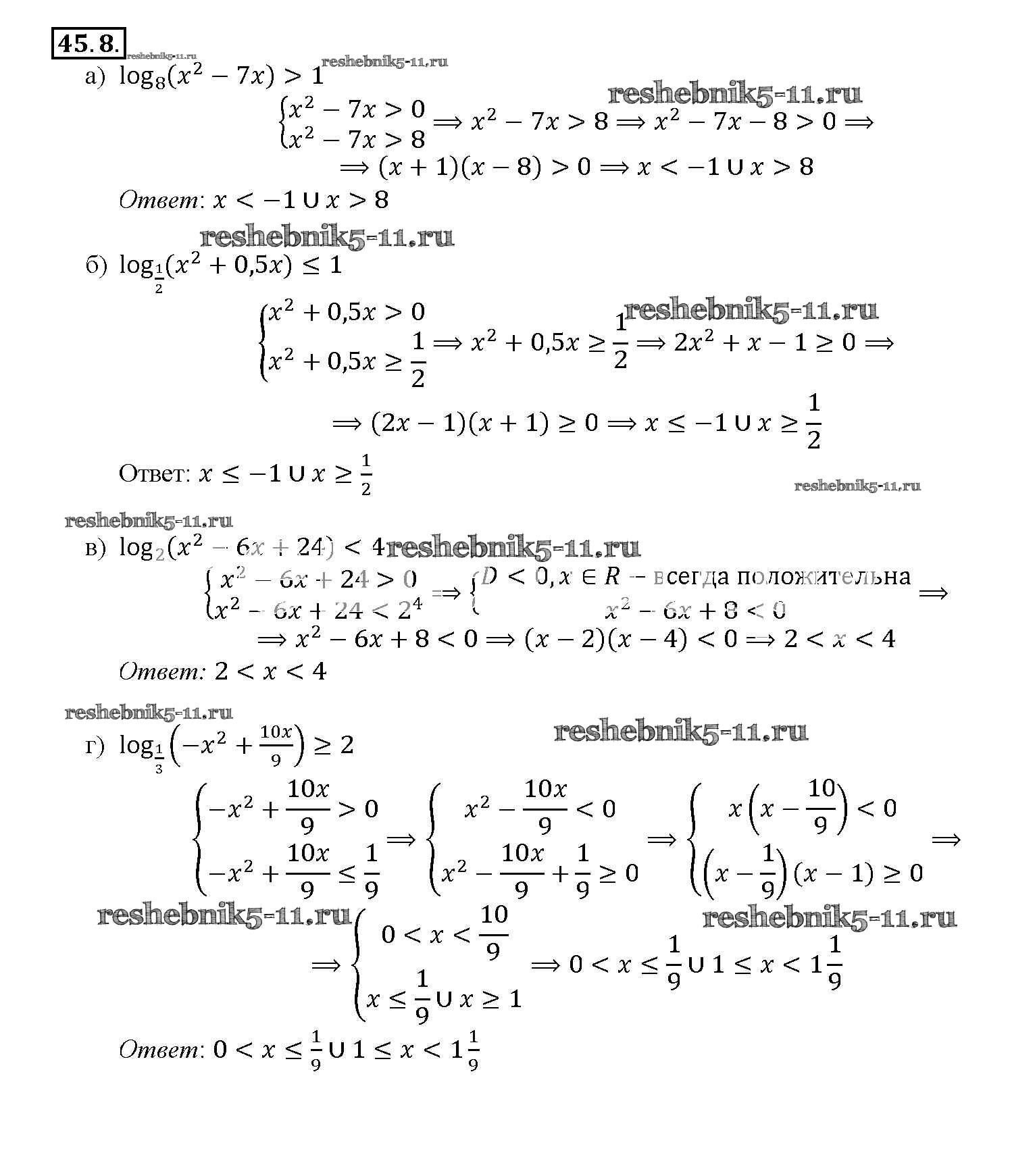 Готовая домашняя работа с ответами по Алгебре за 10, 11 класс Мордкович, Денищева, Корешкова, Мишустина, Семёнов, Тульчинская Задачник Базовый уровень Часть 2 Мнемозина 2015 ФГОС - §45. Логарифмические неравенства 45. 8