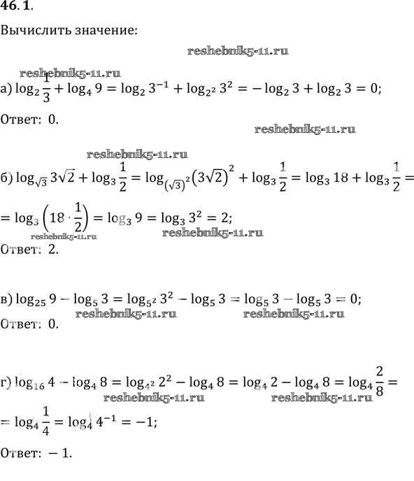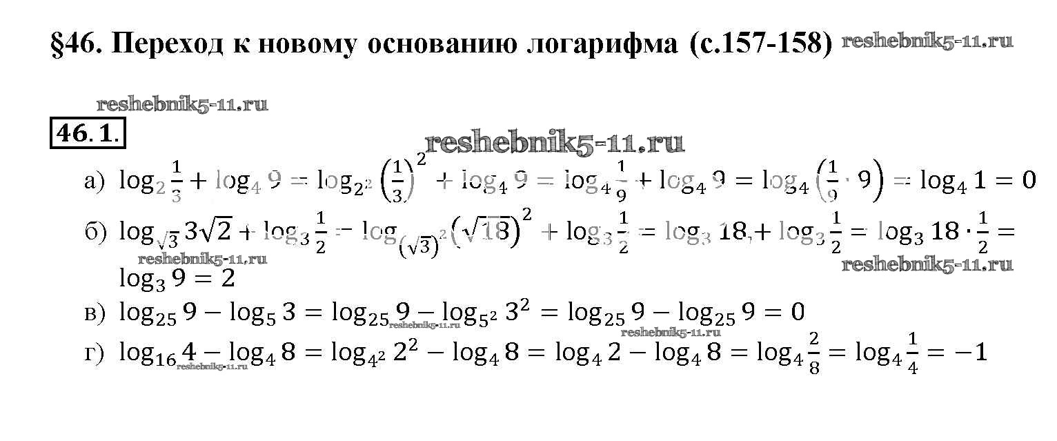 Готовая домашняя работа с ответами по Алгебре за 10, 11 класс Мордкович, Денищева, Корешкова, Мишустина, Семёнов, Тульчинская Задачник Базовый уровень Часть 2 Мнемозина 2015 ФГОС - §46. Переход к новому основанию логарифма 46. 1