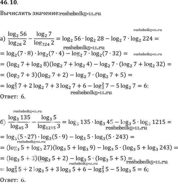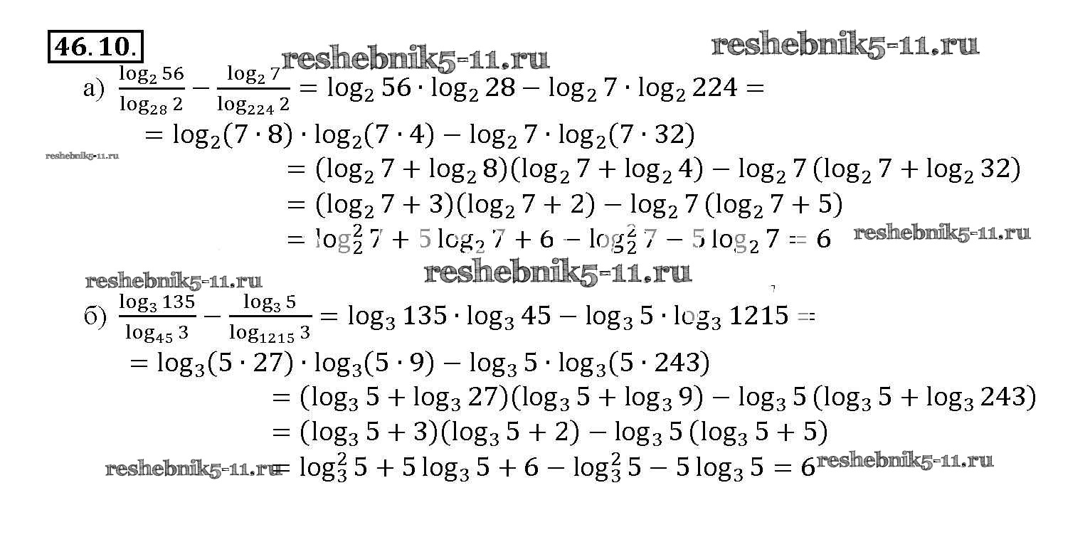 Готовая домашняя работа с ответами по Алгебре за 10, 11 класс Мордкович, Денищева, Корешкова, Мишустина, Семёнов, Тульчинская Задачник Базовый уровень Часть 2 Мнемозина 2015 ФГОС - §46. Переход к новому основанию логарифма 46. 10