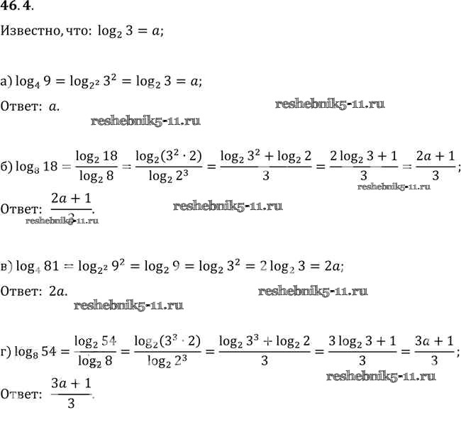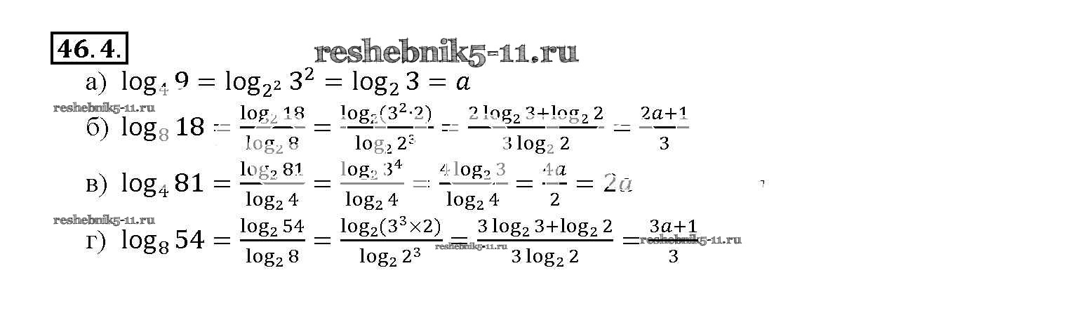Готовая домашняя работа с ответами по Алгебре за 10, 11 класс Мордкович, Денищева, Корешкова, Мишустина, Семёнов, Тульчинская Задачник Базовый уровень Часть 2 Мнемозина 2015 ФГОС - §46. Переход к новому основанию логарифма 46. 4