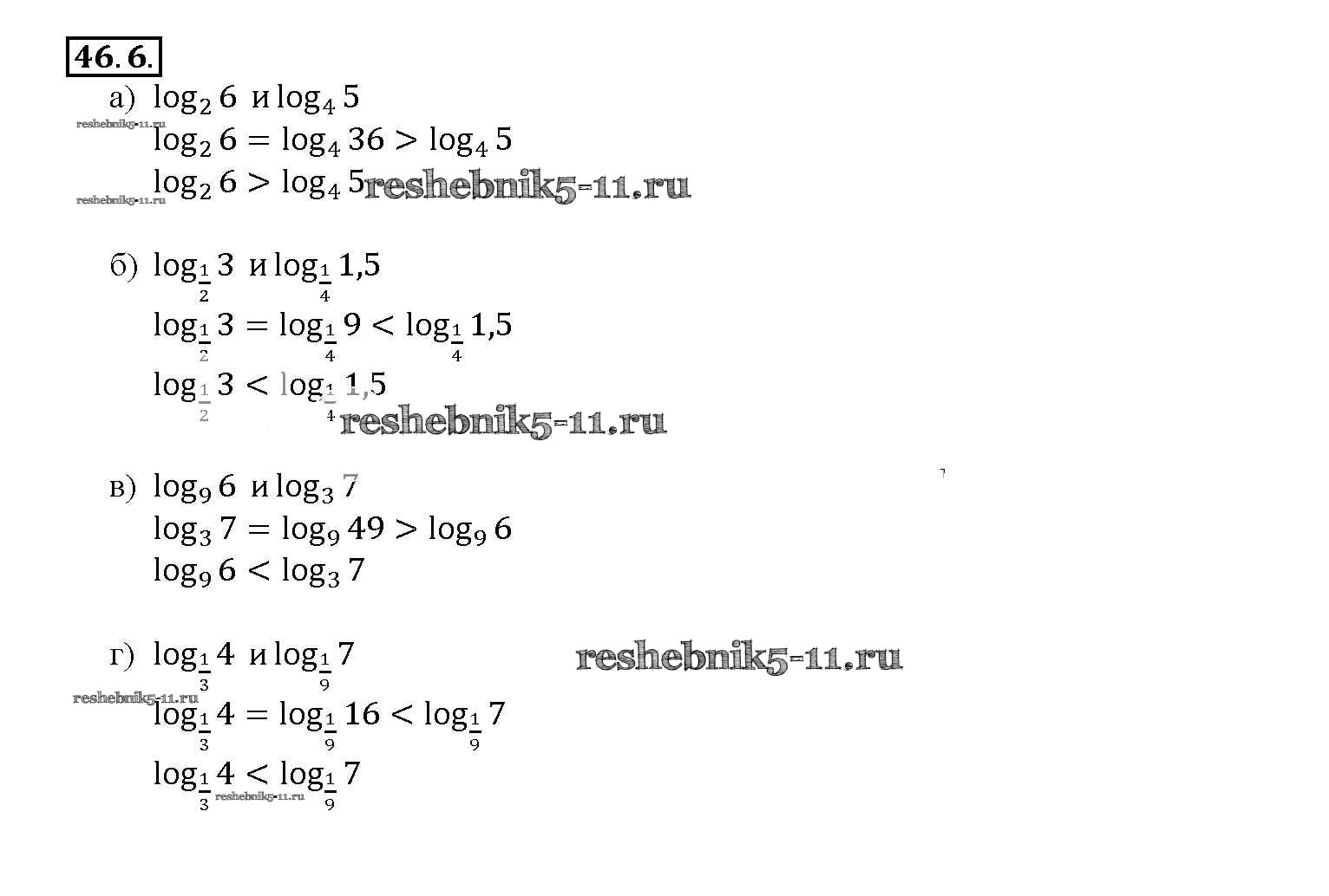 Готовая домашняя работа с ответами по Алгебре за 10, 11 класс Мордкович, Денищева, Корешкова, Мишустина, Семёнов, Тульчинская Задачник Базовый уровень Часть 2 Мнемозина 2015 ФГОС - §46. Переход к новому основанию логарифма 46. 6