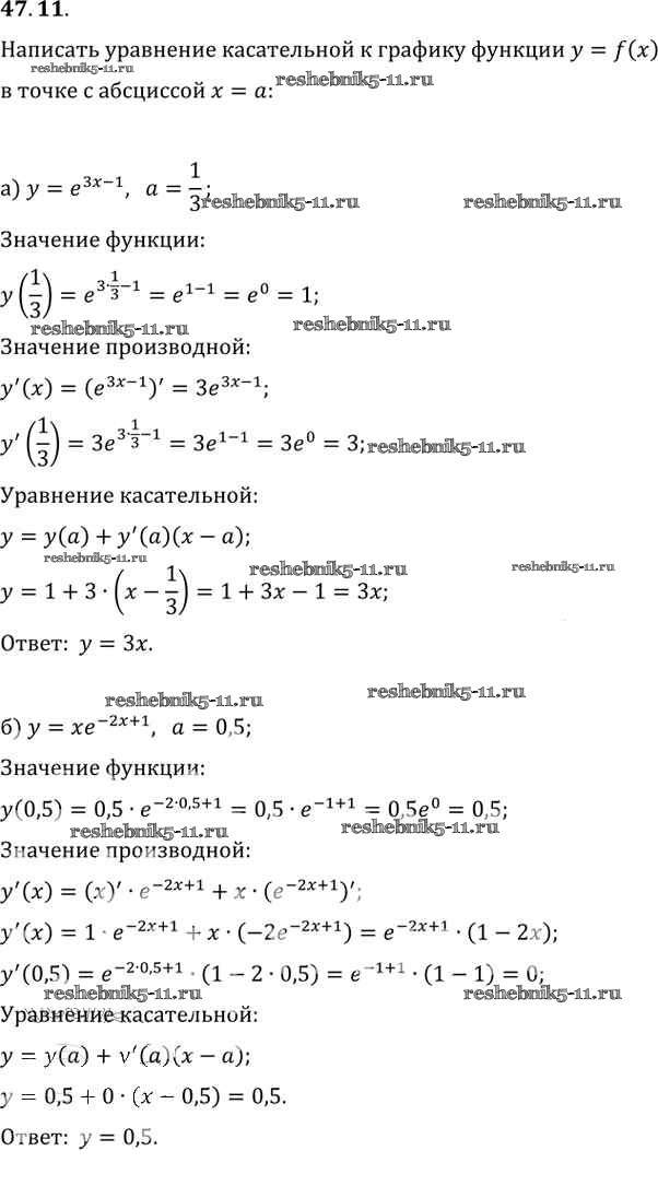 Готовая домашняя работа с ответами по Алгебре за 10, 11 класс Мордкович, Денищева, Корешкова, Мишустина, Семёнов, Тульчинская Задачник Базовый уровень Часть 2 Мнемозина 2015 ФГОС - §47. Дифференцирование показательной и логарифмической функций 47. 11